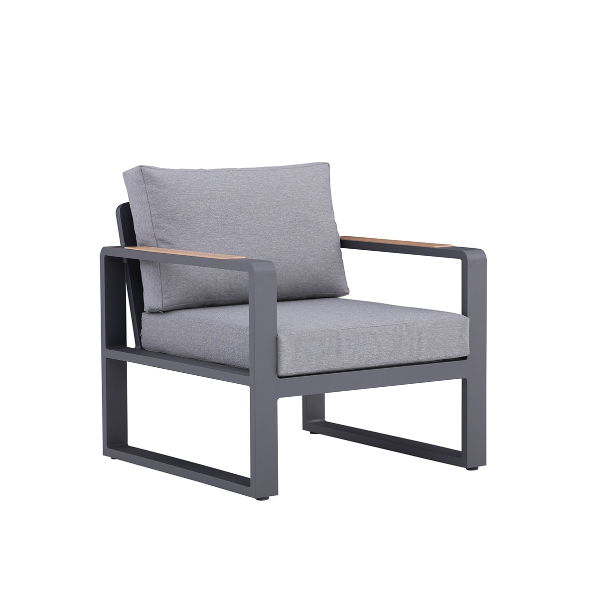 Dimension: W 76.5 x H 73.5 x D 81 cm Frame: Anthracite Aluminum frame, powder coated, armrest with heat-transfer plate
