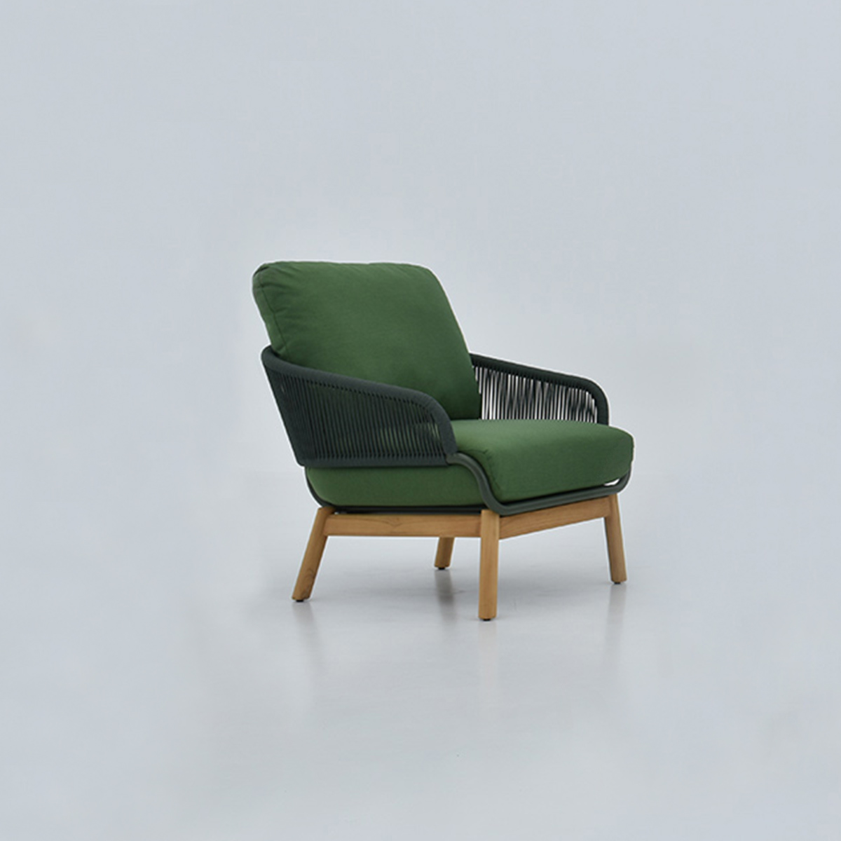 Akka Club Chair with FSC Teak Base in Green Dimensions: Armchair: 80 x 82.6 x 70 cm Material: – Aluminum
