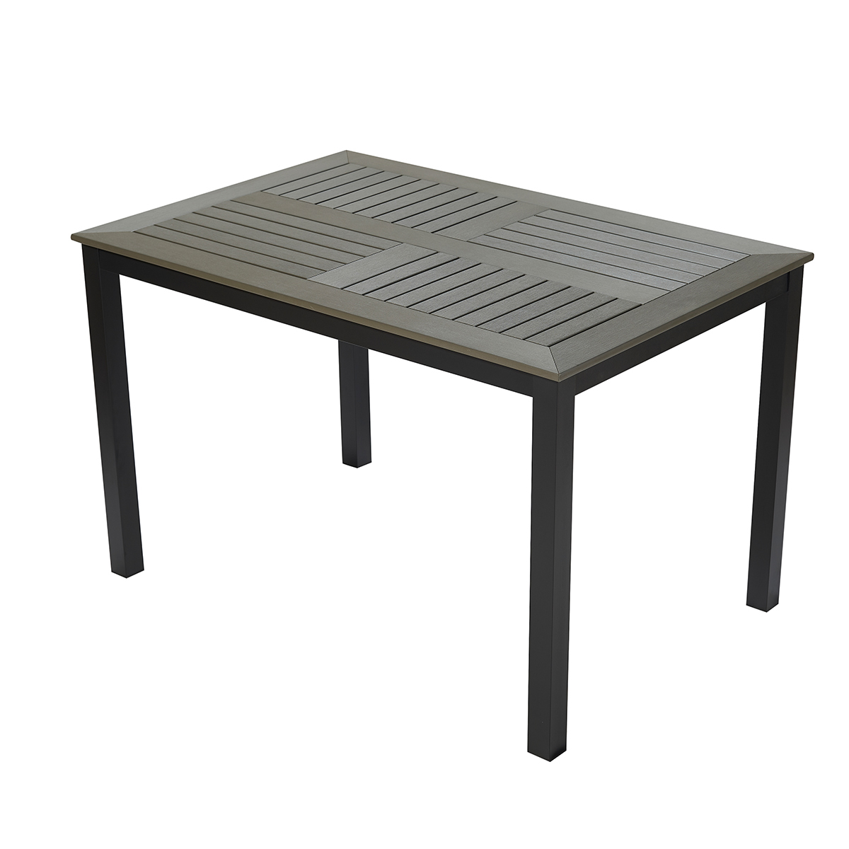 Dimension: W 120 x D 80 x H 72 cm Material: Aluminium Frame with powder coated and Plastic wood Color:
