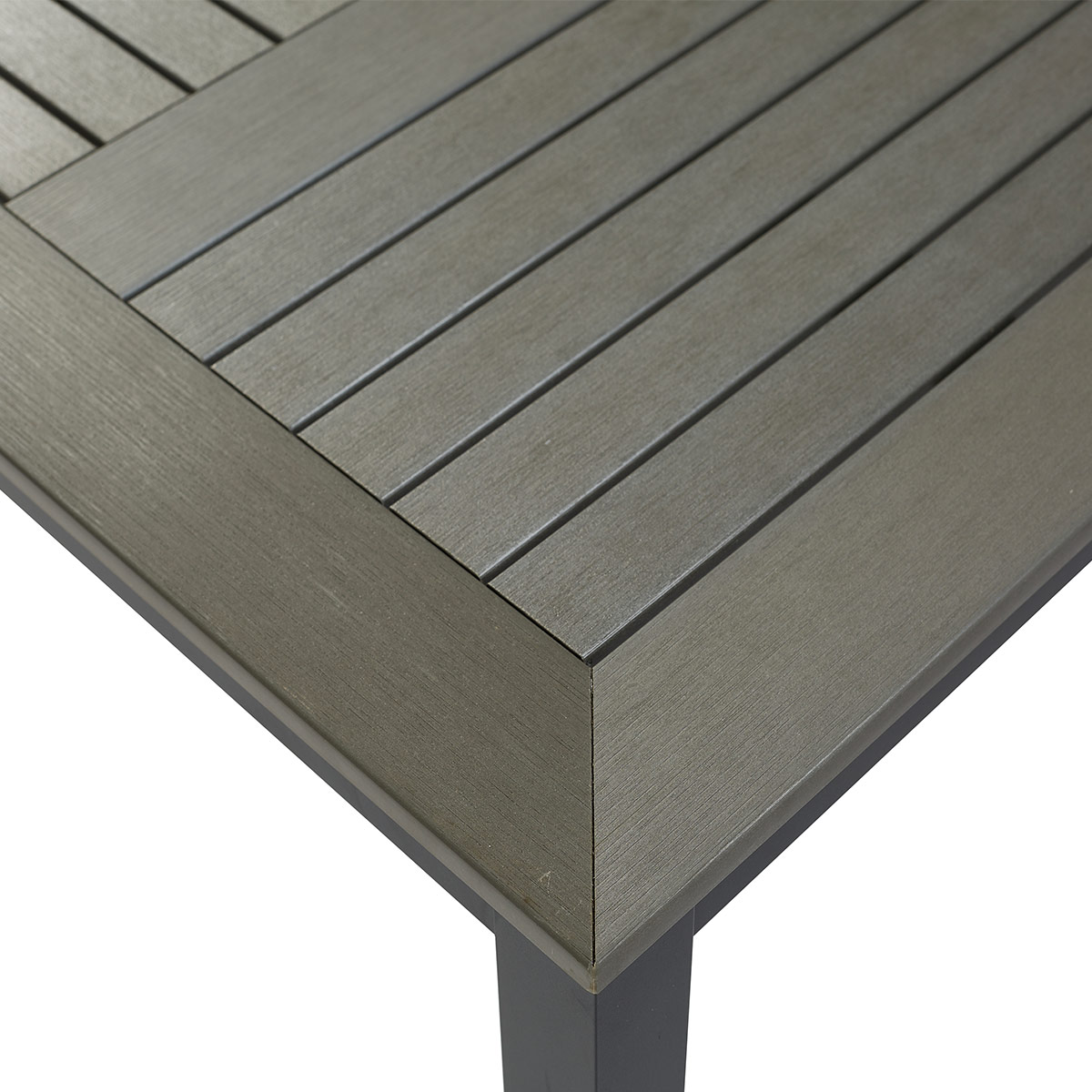 Dimension: W 80 x D 80 x H 73 cm Material: Aluminium Frame with powder coated and Plastic wood Color: