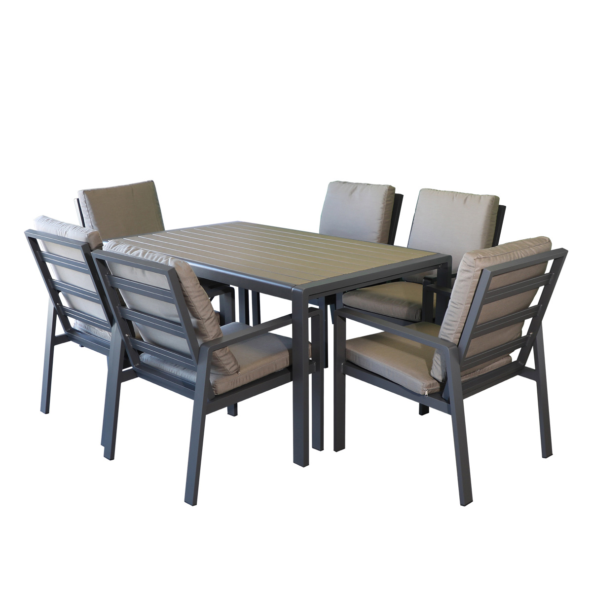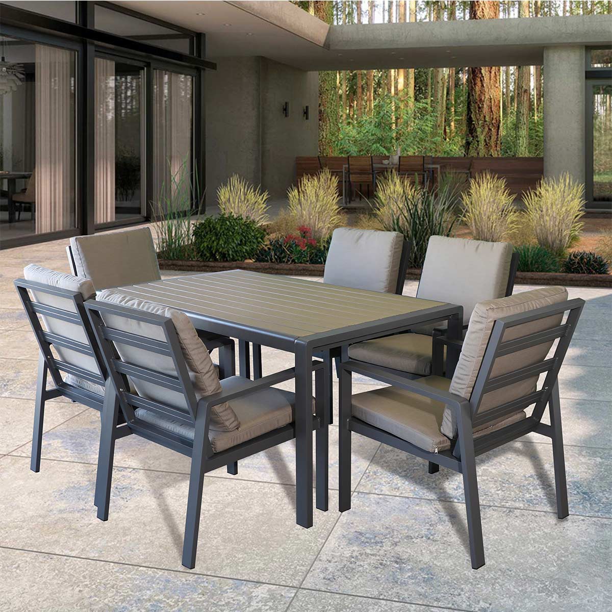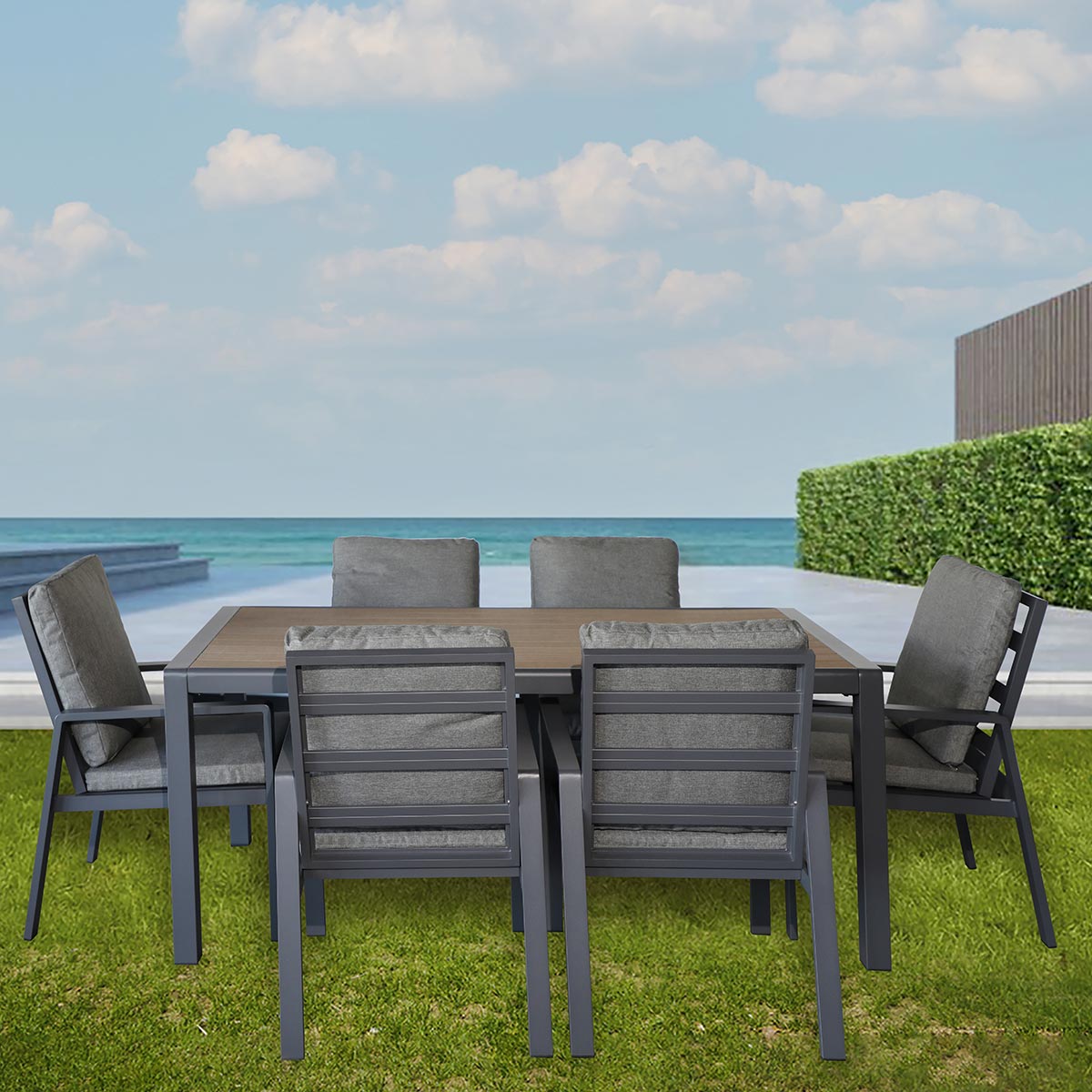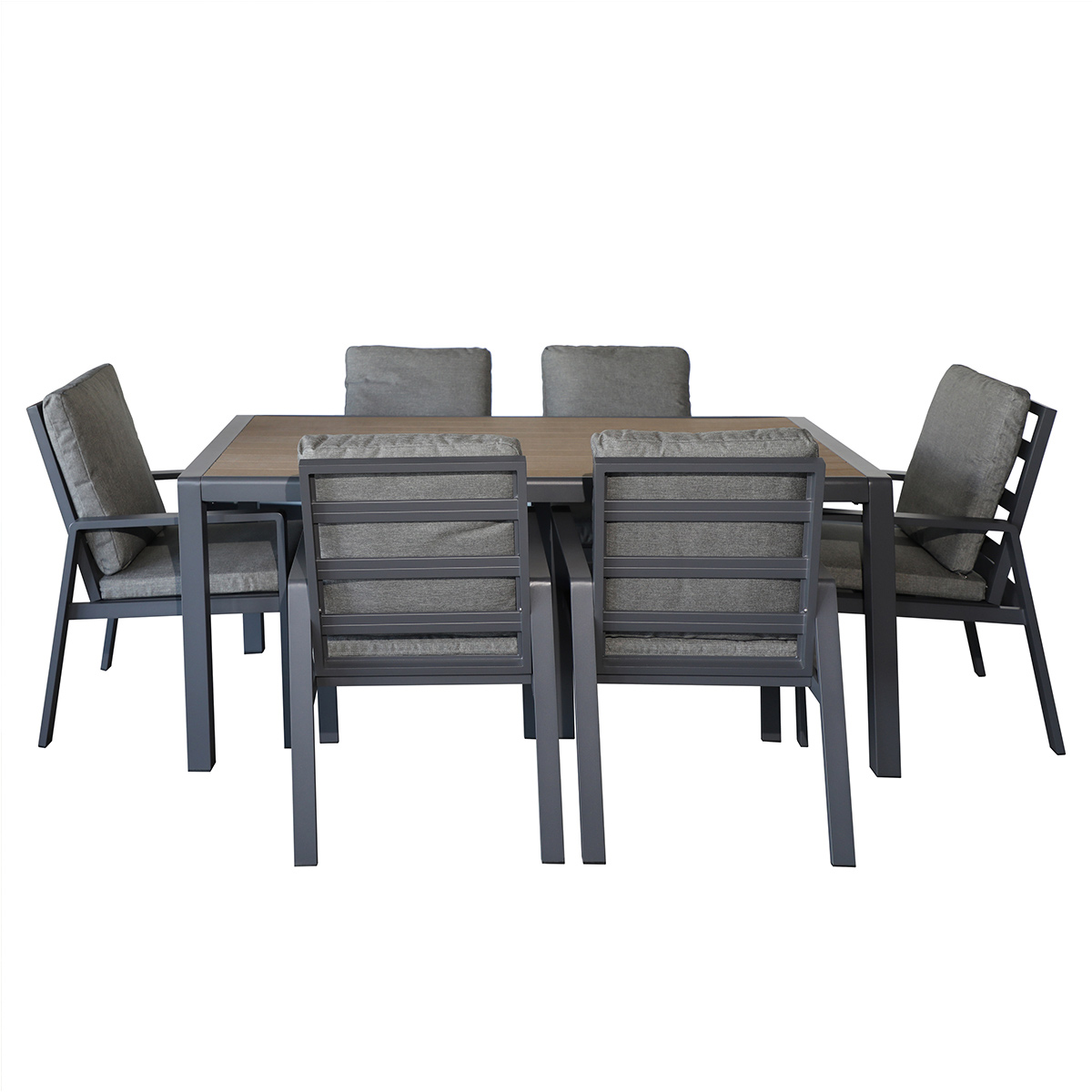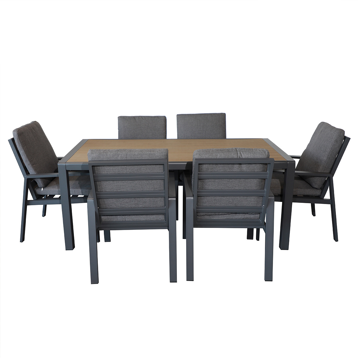 Dimension: W 120 x D 80 x H 72 cm Material: Aluminium Frame with powder coated and Plastic wood Color: