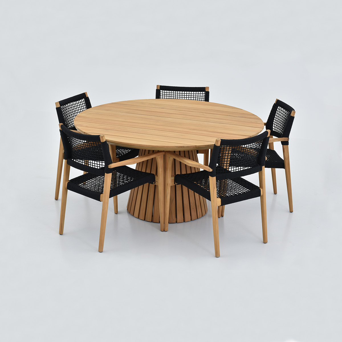 Table and 5 chairs President Dining Table 150 Dimensions: Ø 150 x H 75 cm Material: FSC Teak wood in