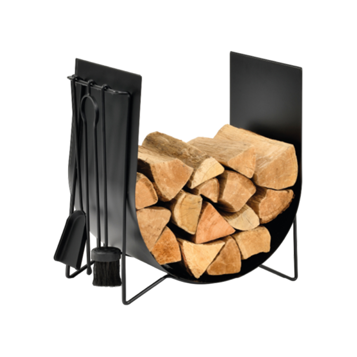 Dimensions: W 55 x H 31 x D 48 cm Material: Steel Color: Frosted black Capacity: 18 logs Log size: