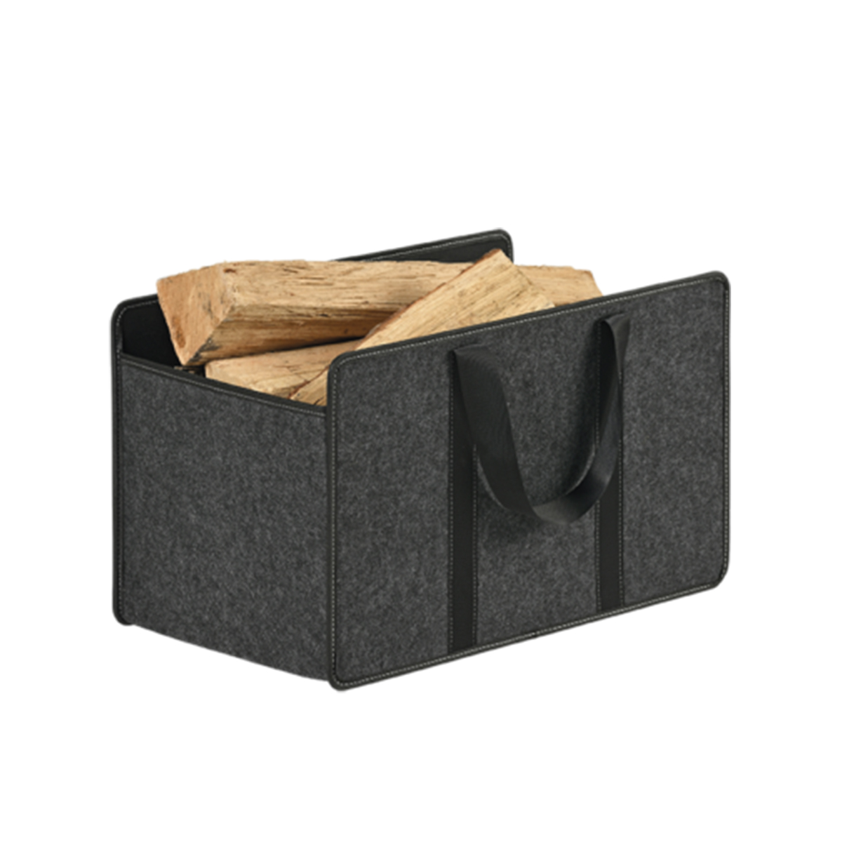 Dimensions: W 54 x H 32 x D 30 cm Material: Gray felt/Black handle Color: Gray / Black Capacity: 18