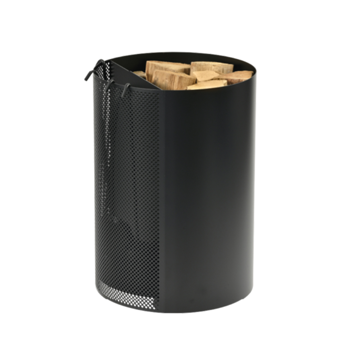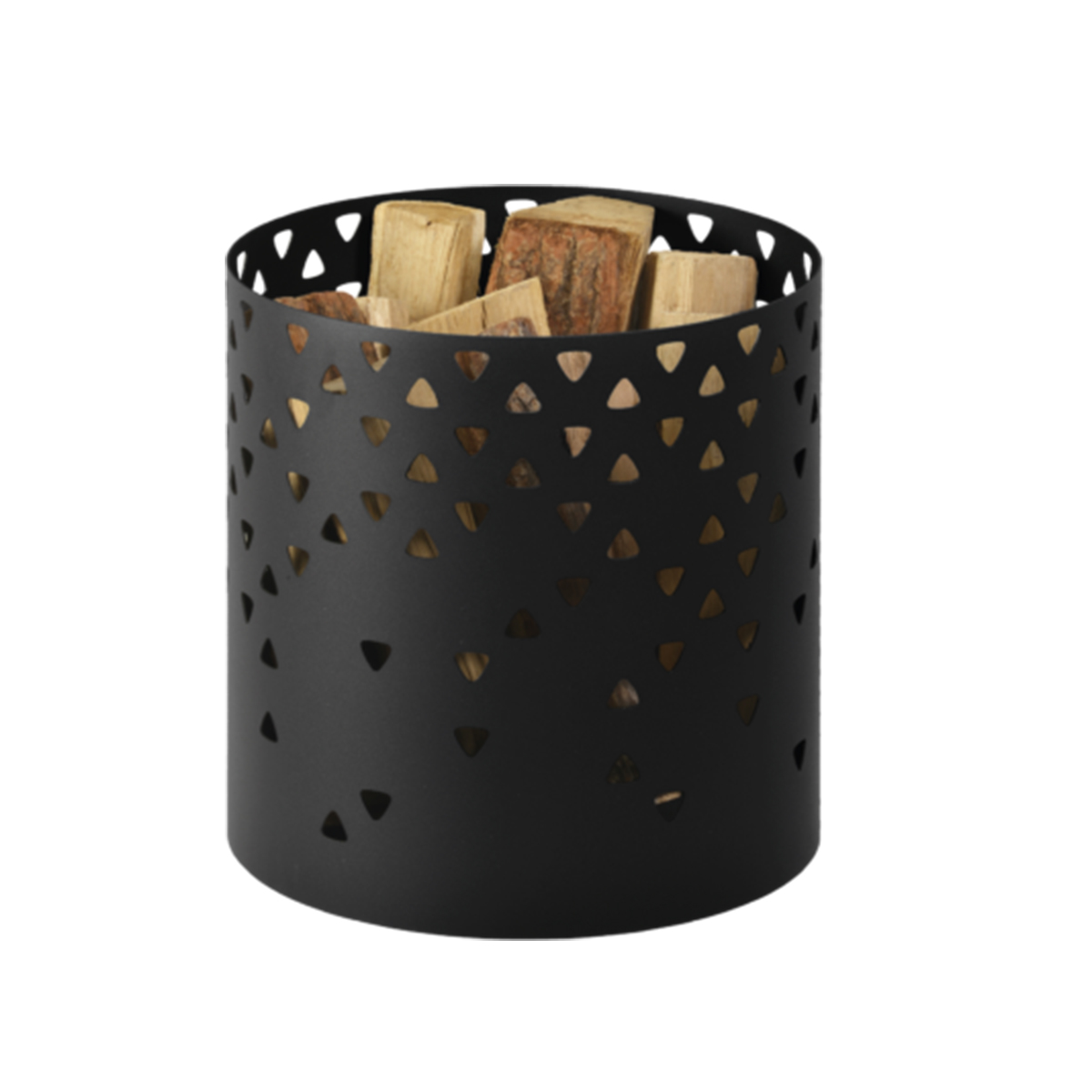 Dimensions: W 41 x H 45 x D 41 cm Material: Steel Color: Frosted black Capacity: 15 logs Log size: