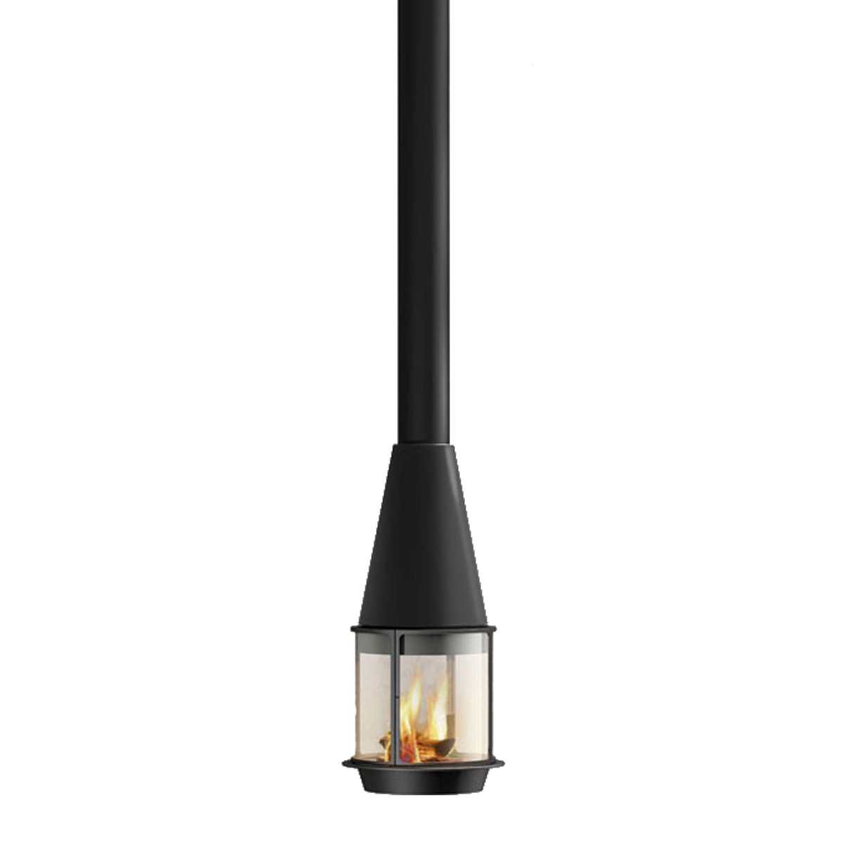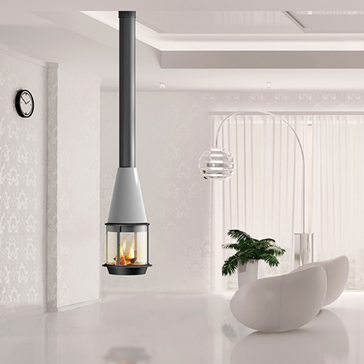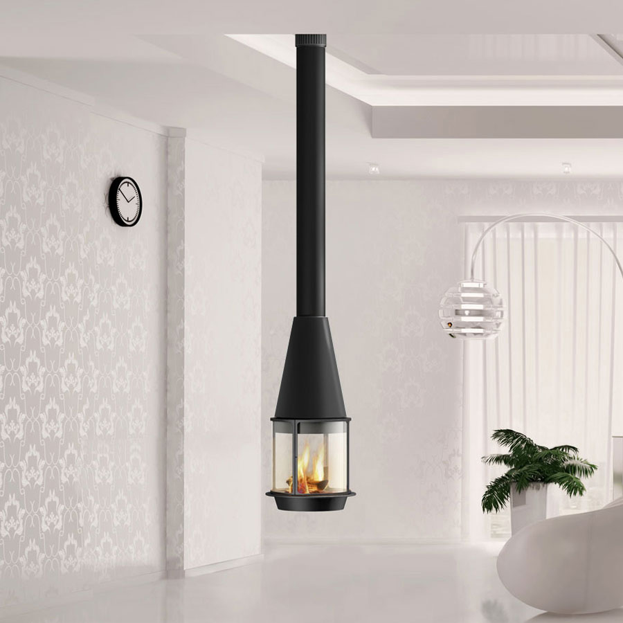 Designed for efficient wood burning, it combines contemporary aesthetics with practical heating.