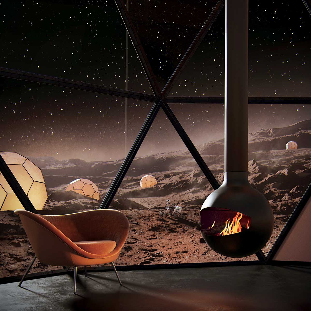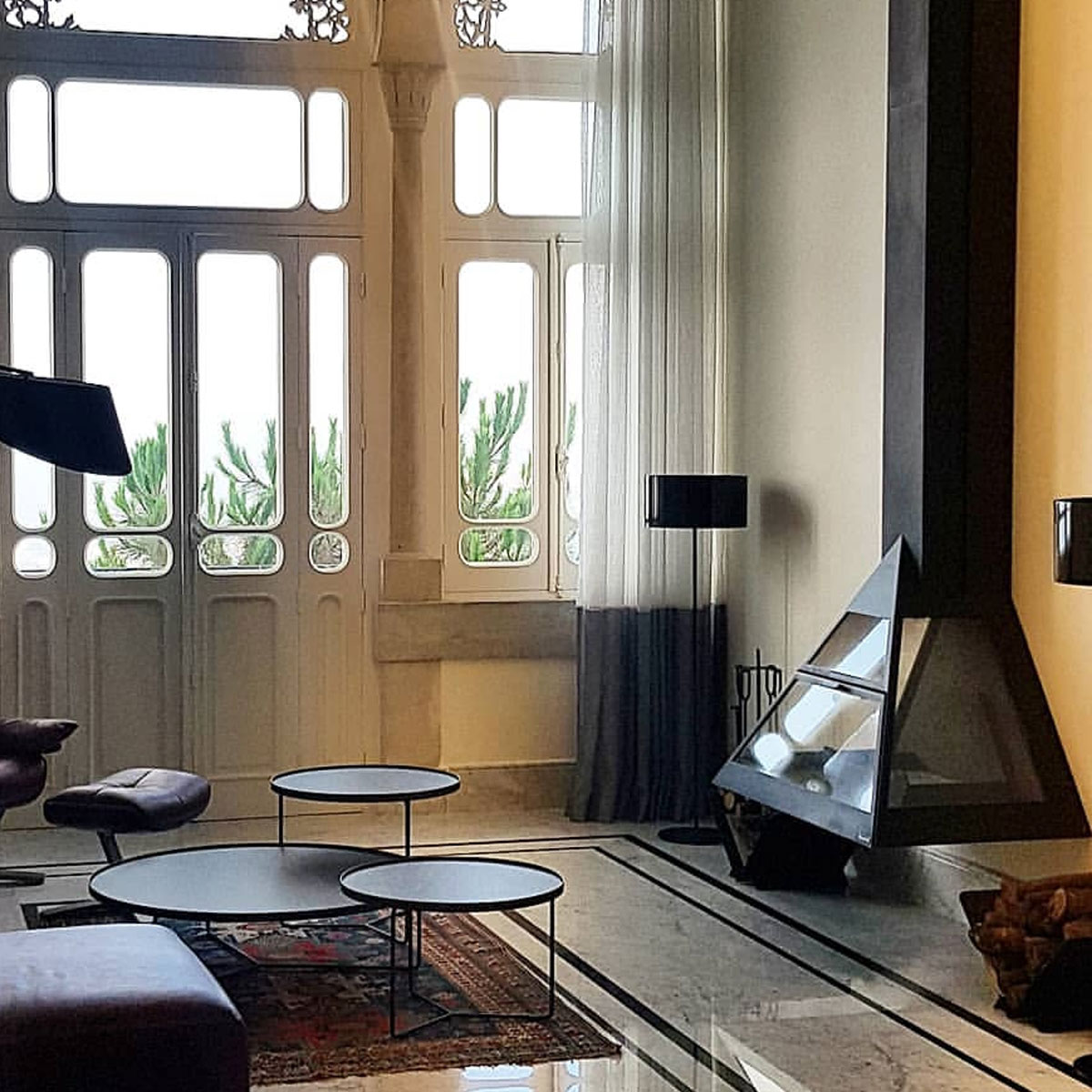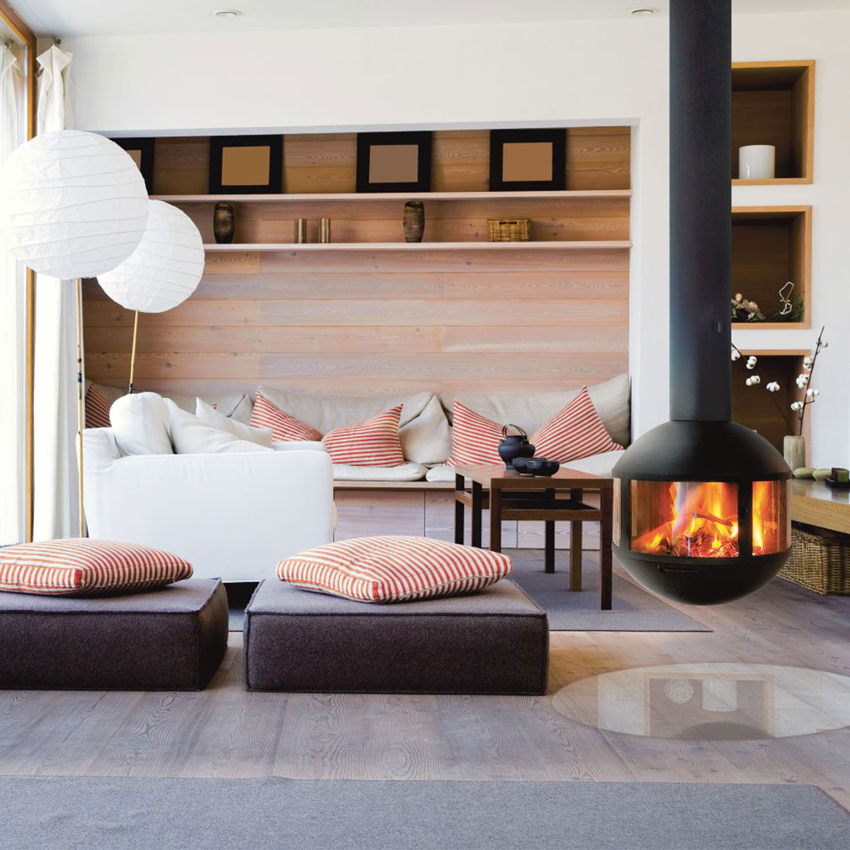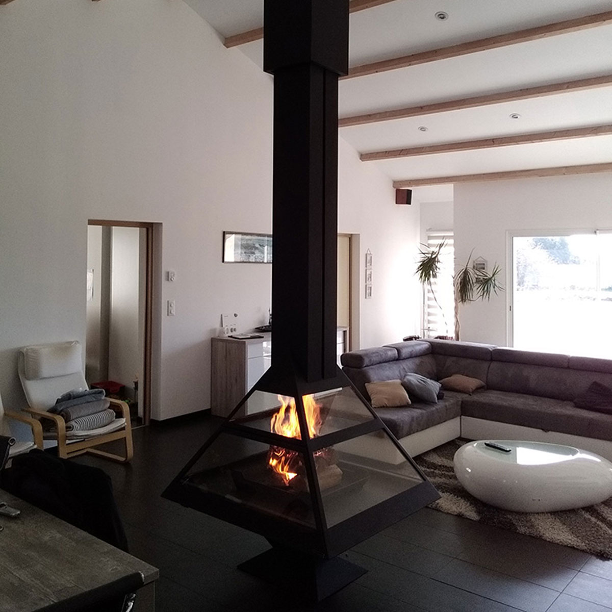 Central fireplace, glassed.
