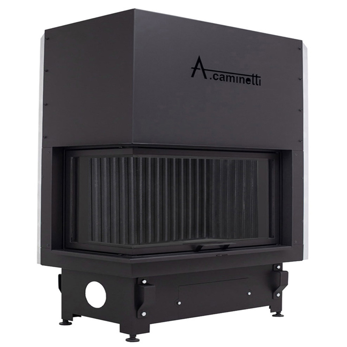 Designed to fit into a corner space, featuring an adjustable height for optimal heat distribution and visibility.