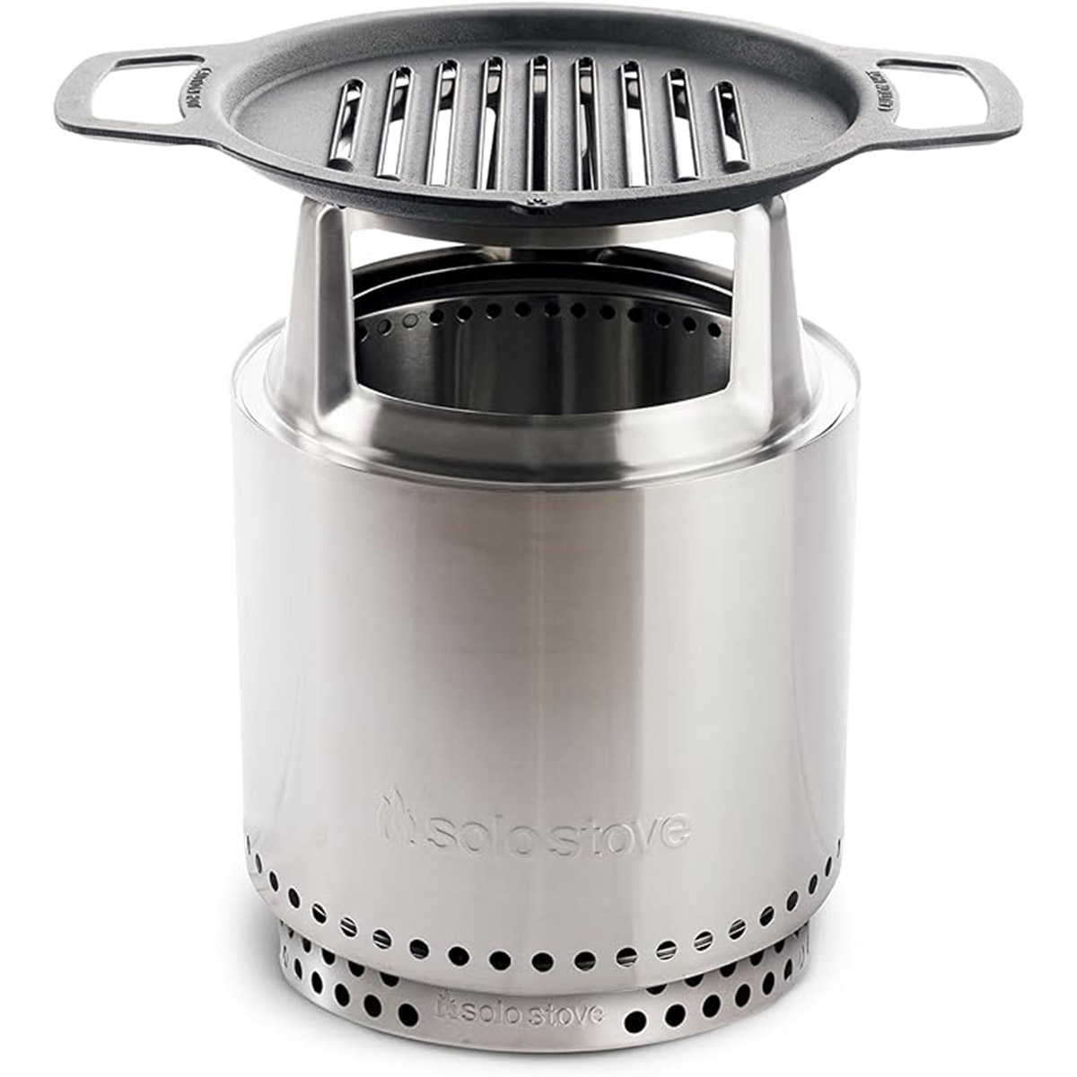 For easy grilling over an open flame, supported by a stable hub for secure placement.
