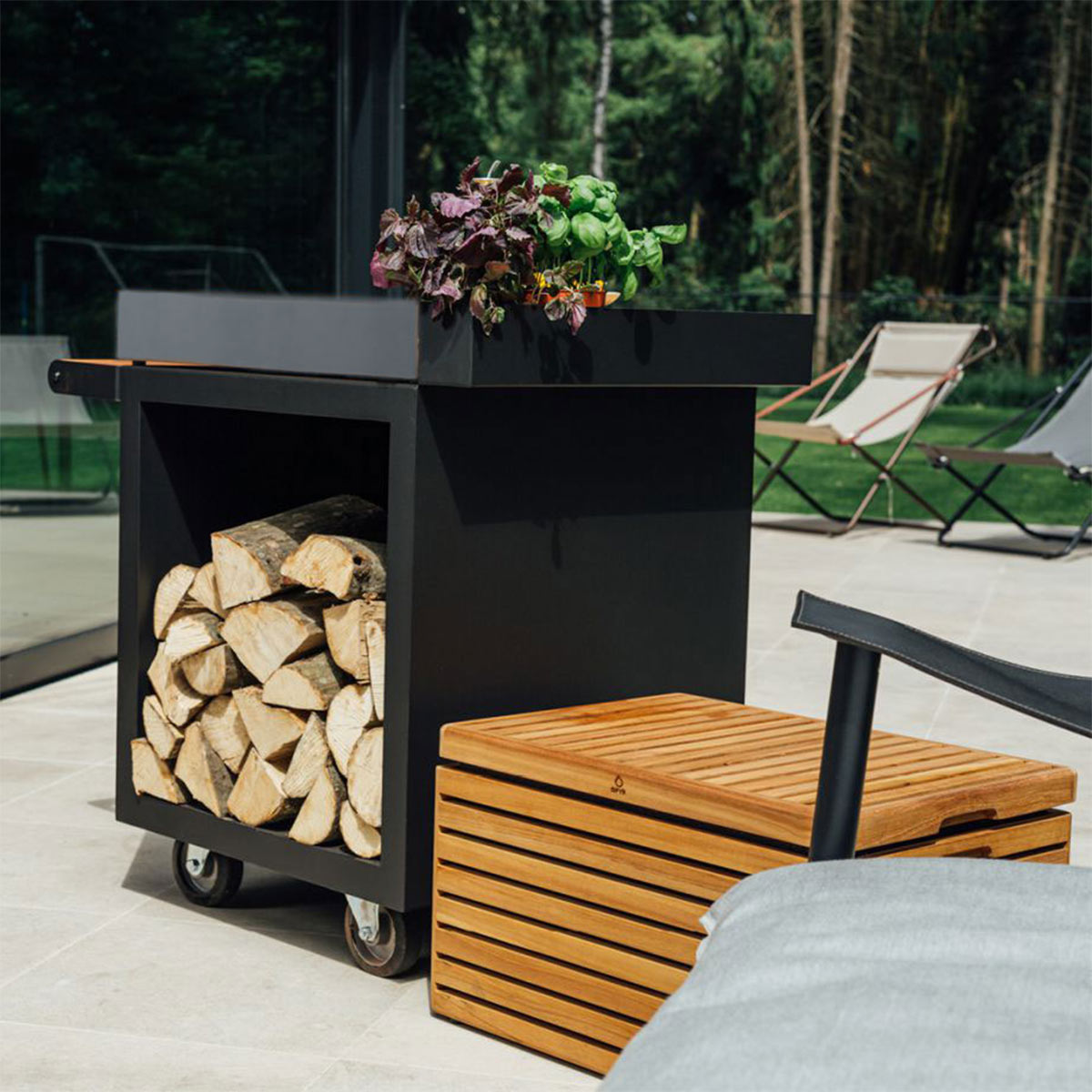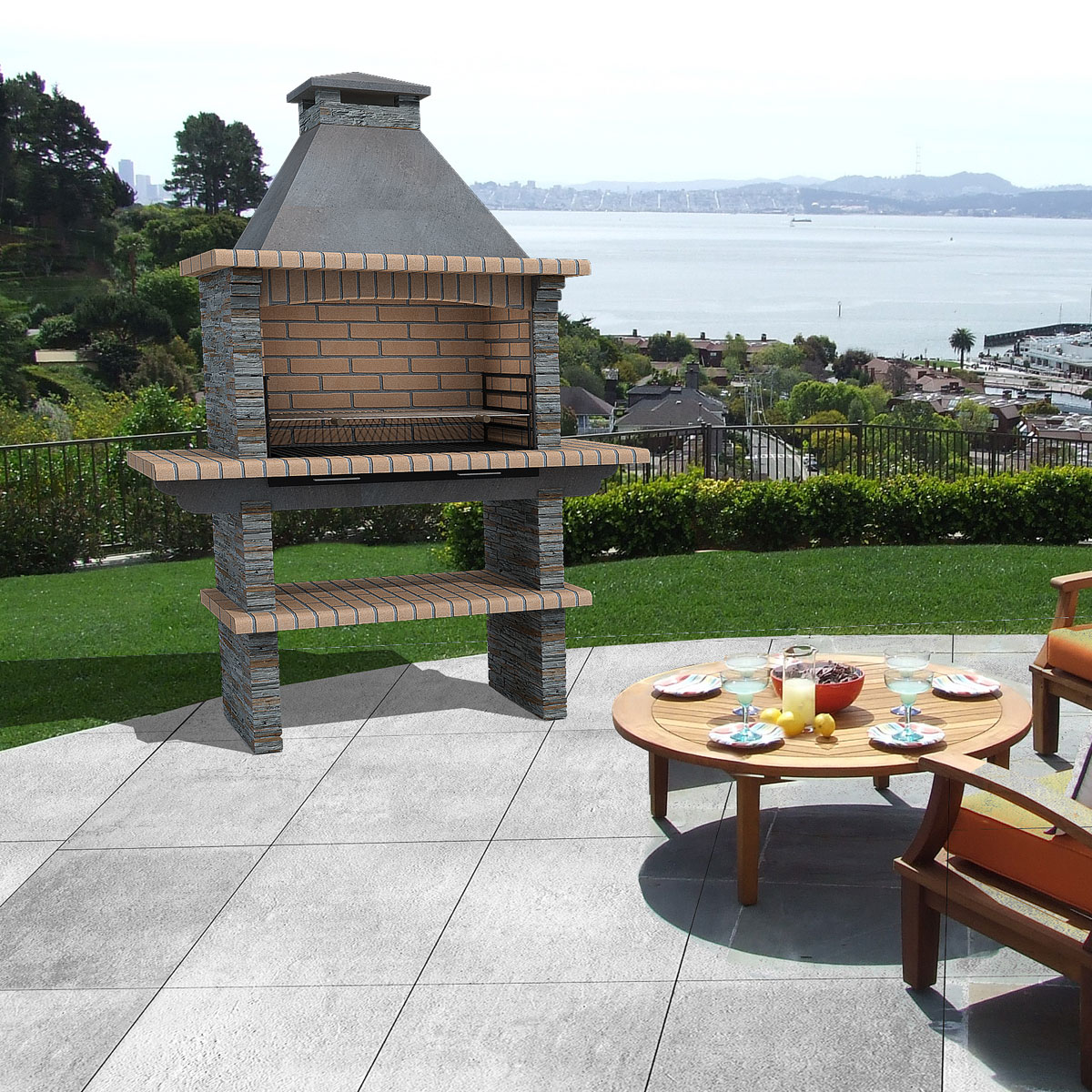 Outdoor barbecue unit designed for cooking and entertaining.