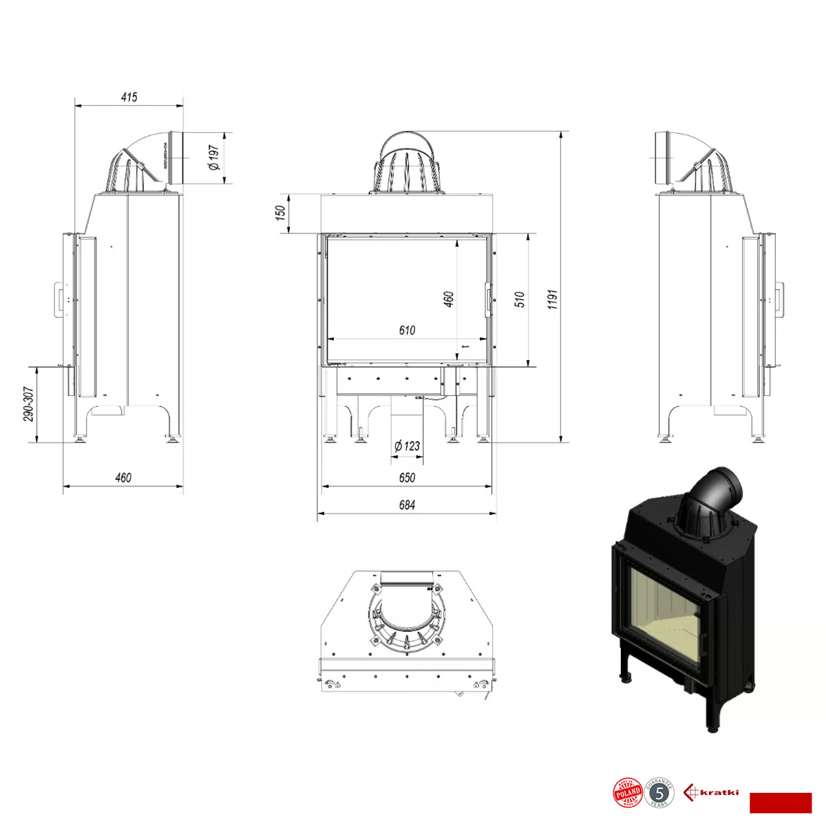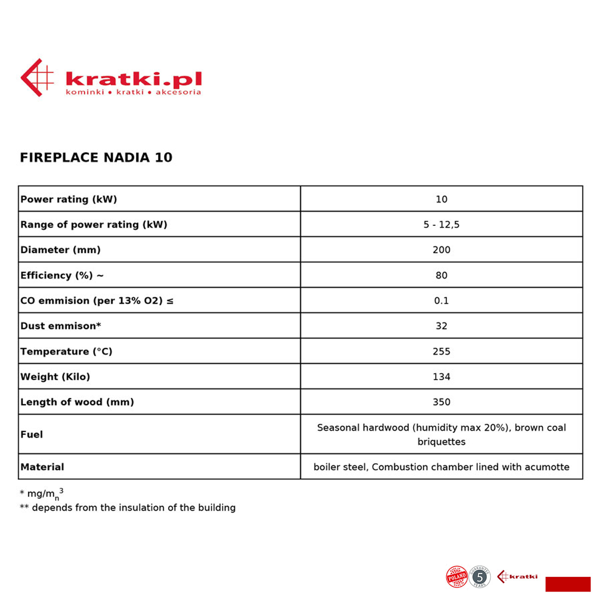 KRATKI POLAND Wood Fire 10 KW Lateral Nadia
