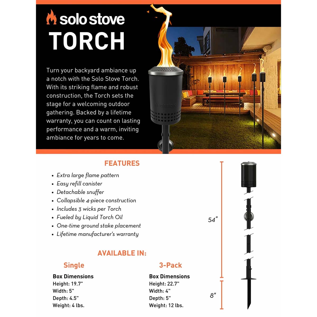 Built with weather-resistant cold-rolled steel, Mesa Torch’s sturdy, sophisticated look is made to last for seasons to come. Plus, like all Solo Stove products, it’s backed by a lifetime warranty.