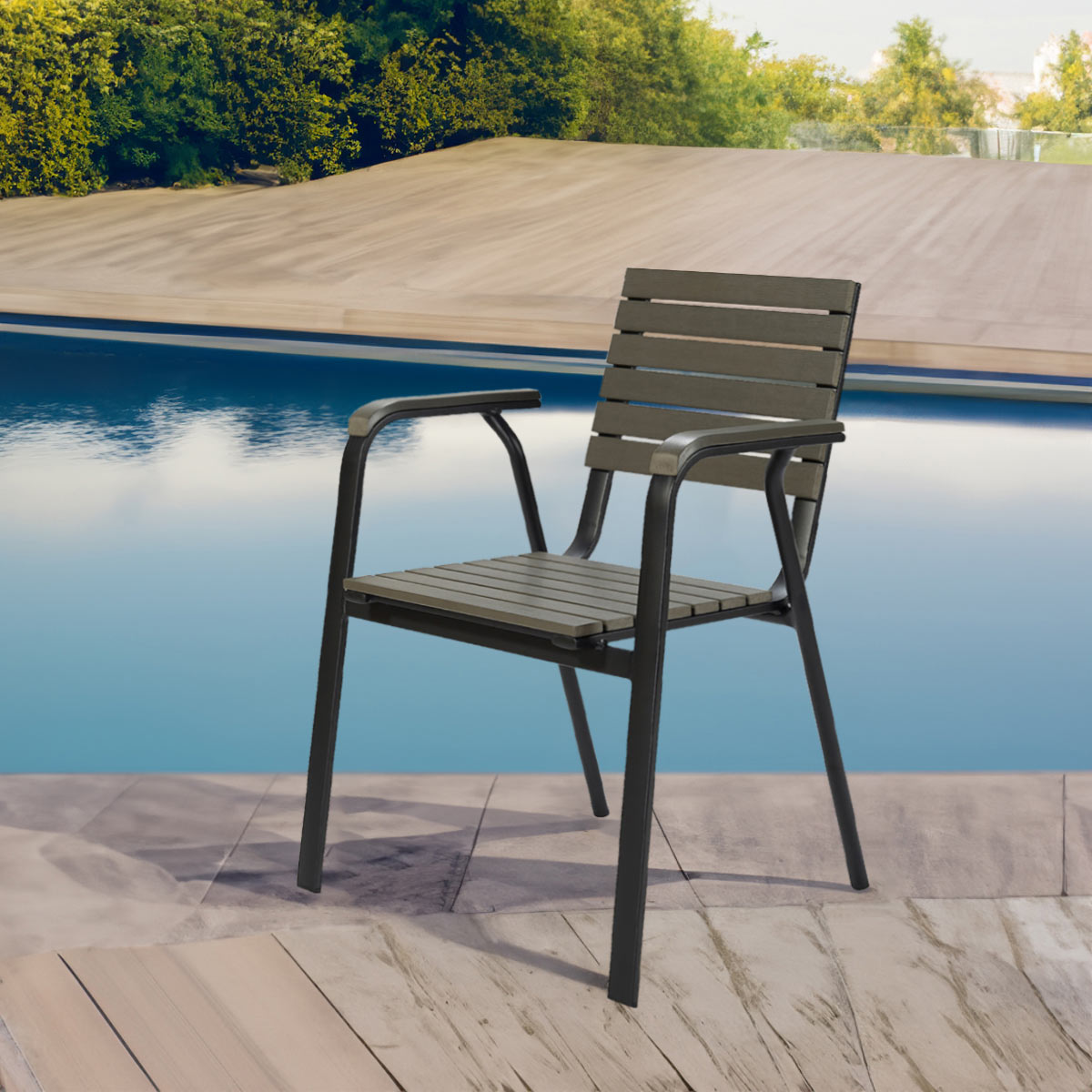 APK Aluminium Chair Black Frame + Grey Polywood 57×57