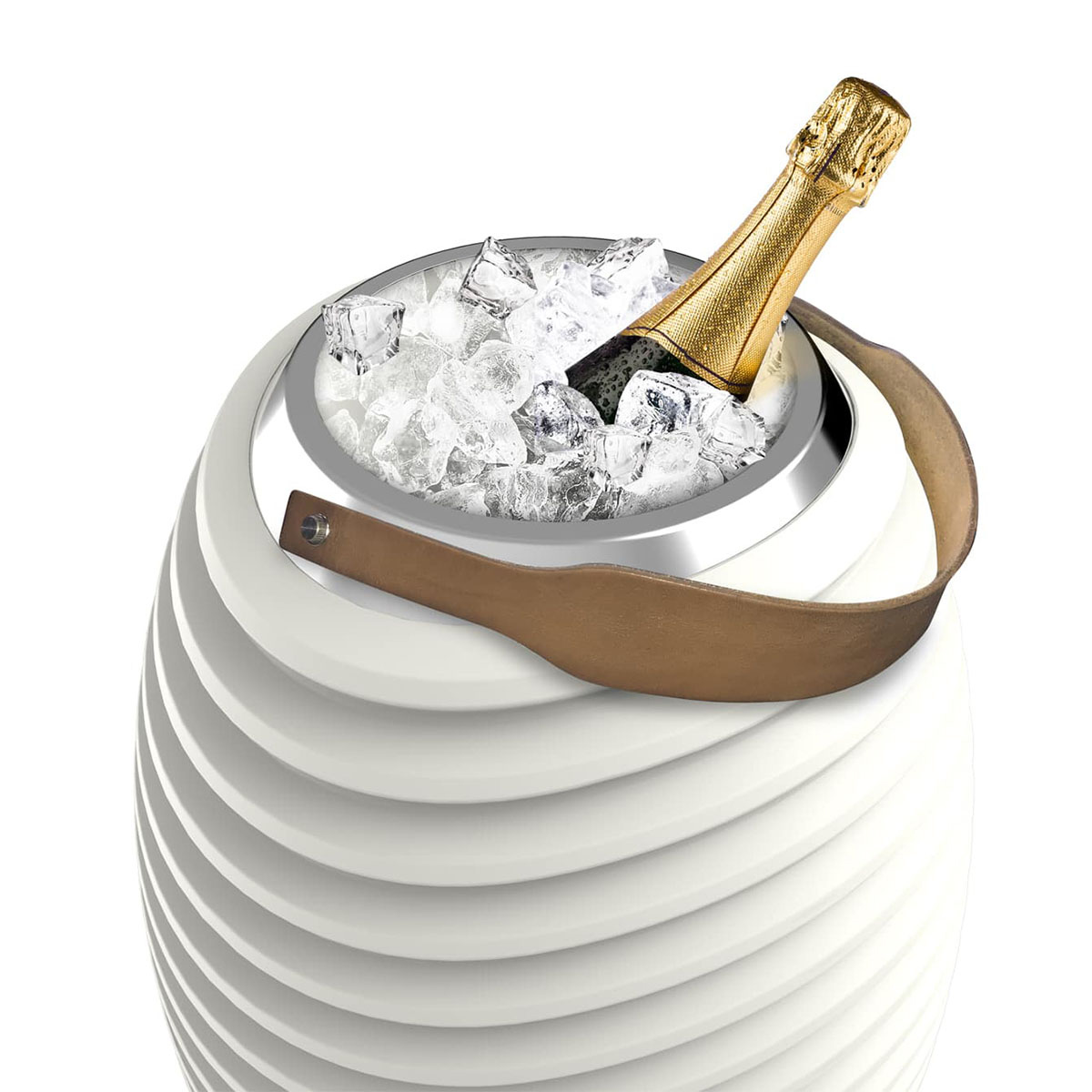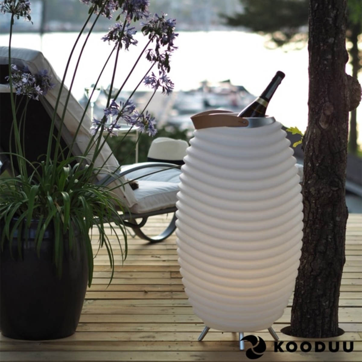 Bluetooth speaker, designer lamp and wine cooler in one. With the Kooduu Synergy you can enjoy your favorite music, ambient lighting and chilled drinks – all at the same time. Wherever you want, whenever you want.