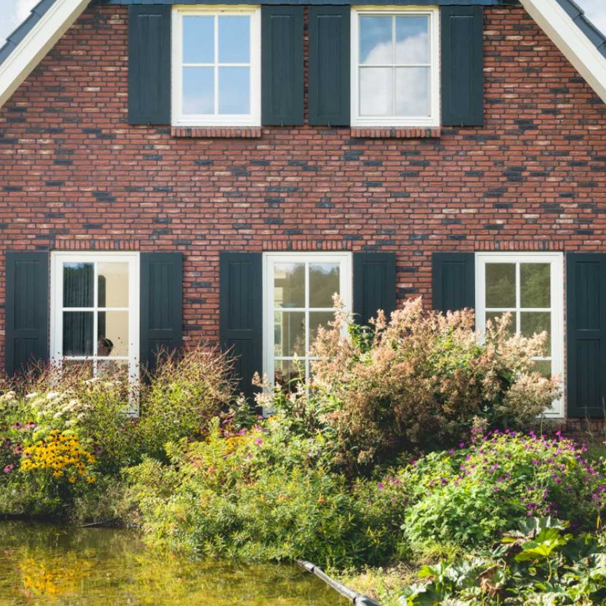 This hand-molded facing brick has a red base, with hues ranging from orange red with white-beige shadings, to vivid red with black spots.