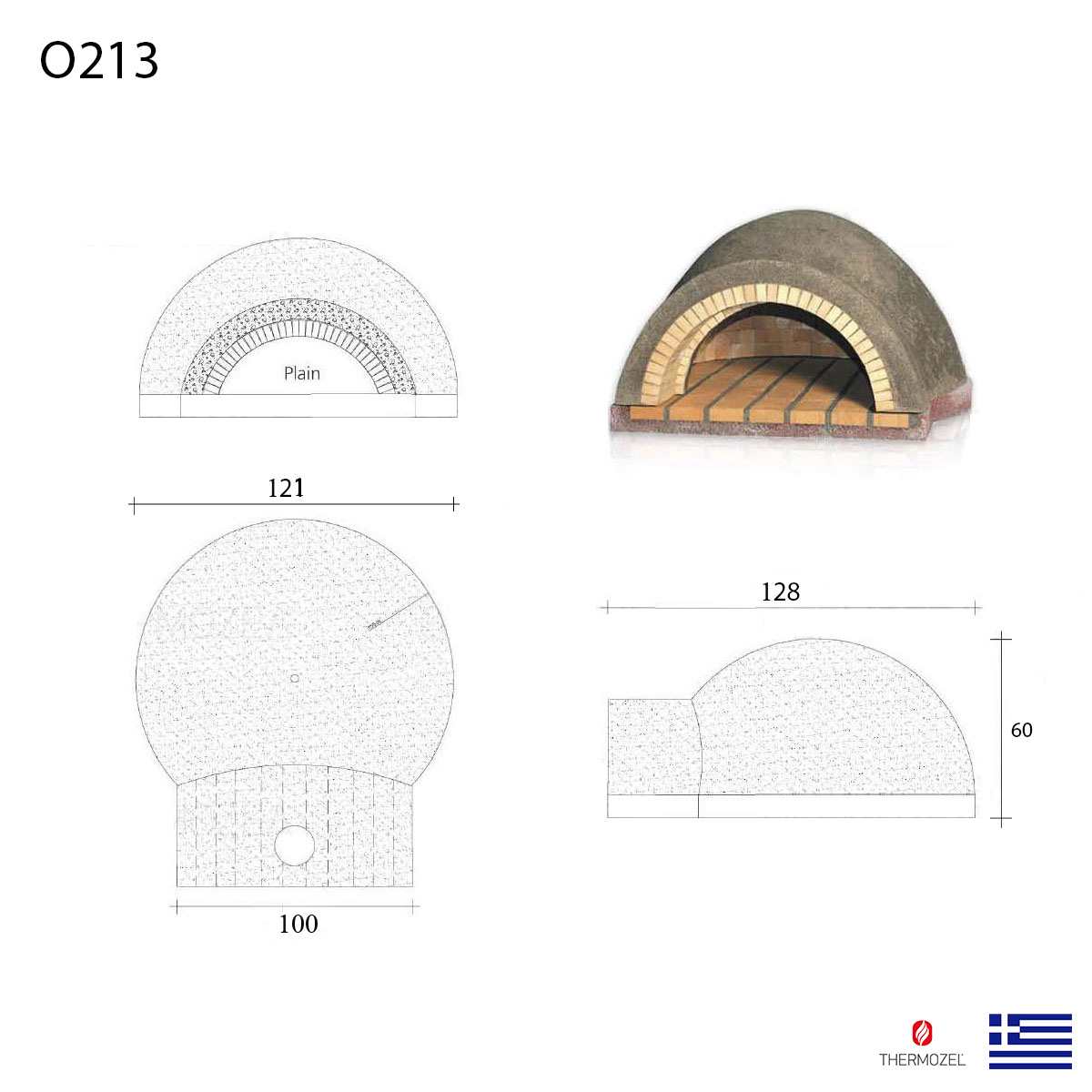 – The Simple traditional oven “Plain” made of bricks , with fire – clay and cement for maintaining a constant internal temperature. Available in 3 different sizes to fit the needs of your space . It is the most reliable and economical solution for healthy cooking .