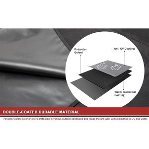 Made of oxford fabric with water and UV resistant coatings, this cover protects your grill all year long from natural elements and keeps it clean.