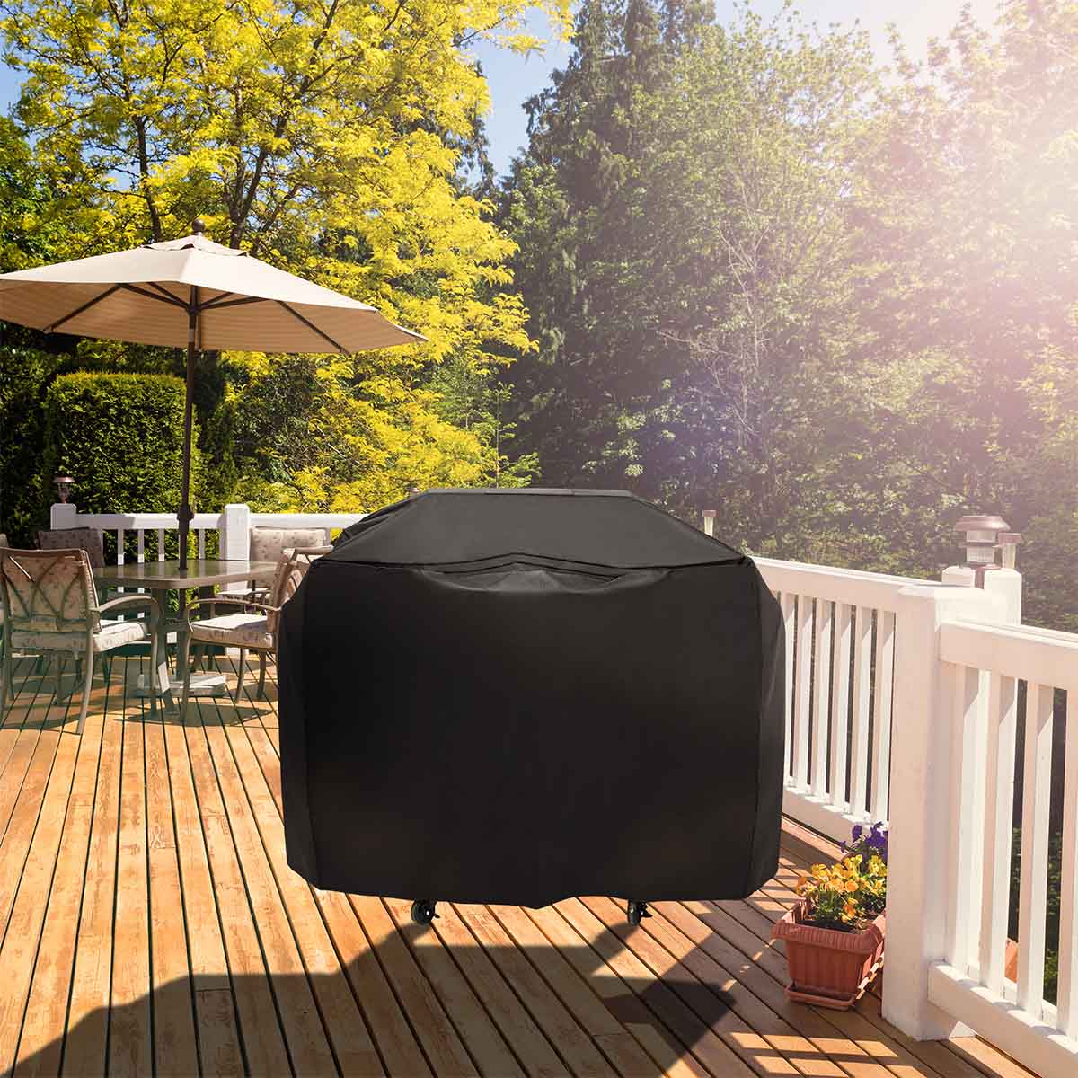 The cover is in a shape that not only looks harmonious on multiple grill types in different yards, but also enables a secure fit in wind days.