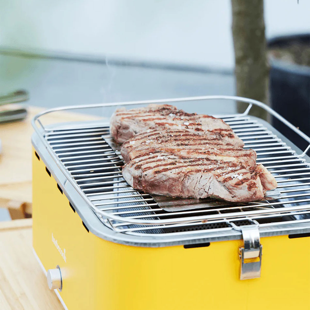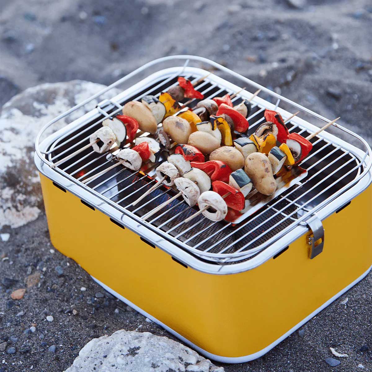 In the city park, at the campsite or just on your terrace? Barbecuing, wherever and whenever you want, that sounds awesome! With the handy Carlo table BBQ, it’s perfectly possible! Carlo is a portable fancy barbecue available in various cheerful colors such as sunshine yellow, sky blue, chili pepper, urban grey and army green. Happy vibes guaranteed! With this table BBQ, you can serve up to six people, at home or on the go. Moreover, it is easy to take this fancy barbecue with you thanks to its handy carrying bag. The model is also extremely safe to use together with kids: Carlo, with the ‘C’ of ‘Cool Boy’, always stays cool on the outside and thanks to the raised rim, food does not fall off the table BBQ. In this way, we avoid burnt fingers and lost delicacies.