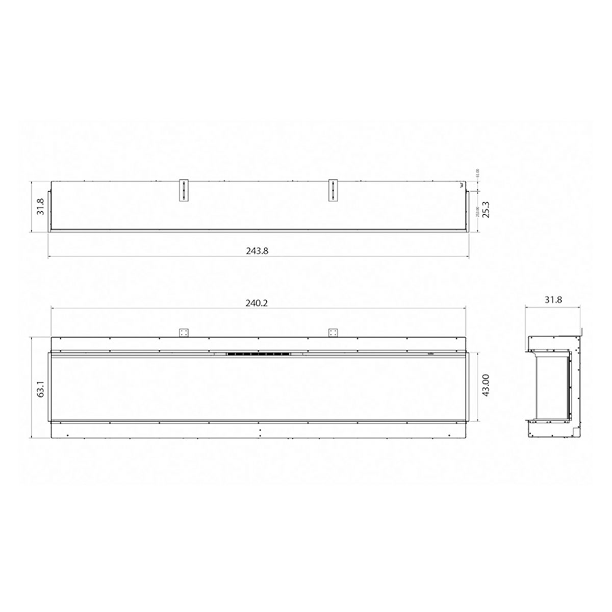 Dimensions: W 243.8 x H 63 x D 31.8 cm