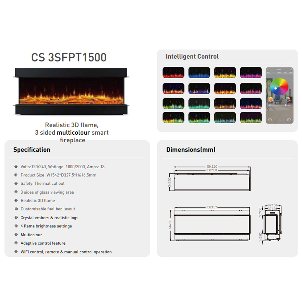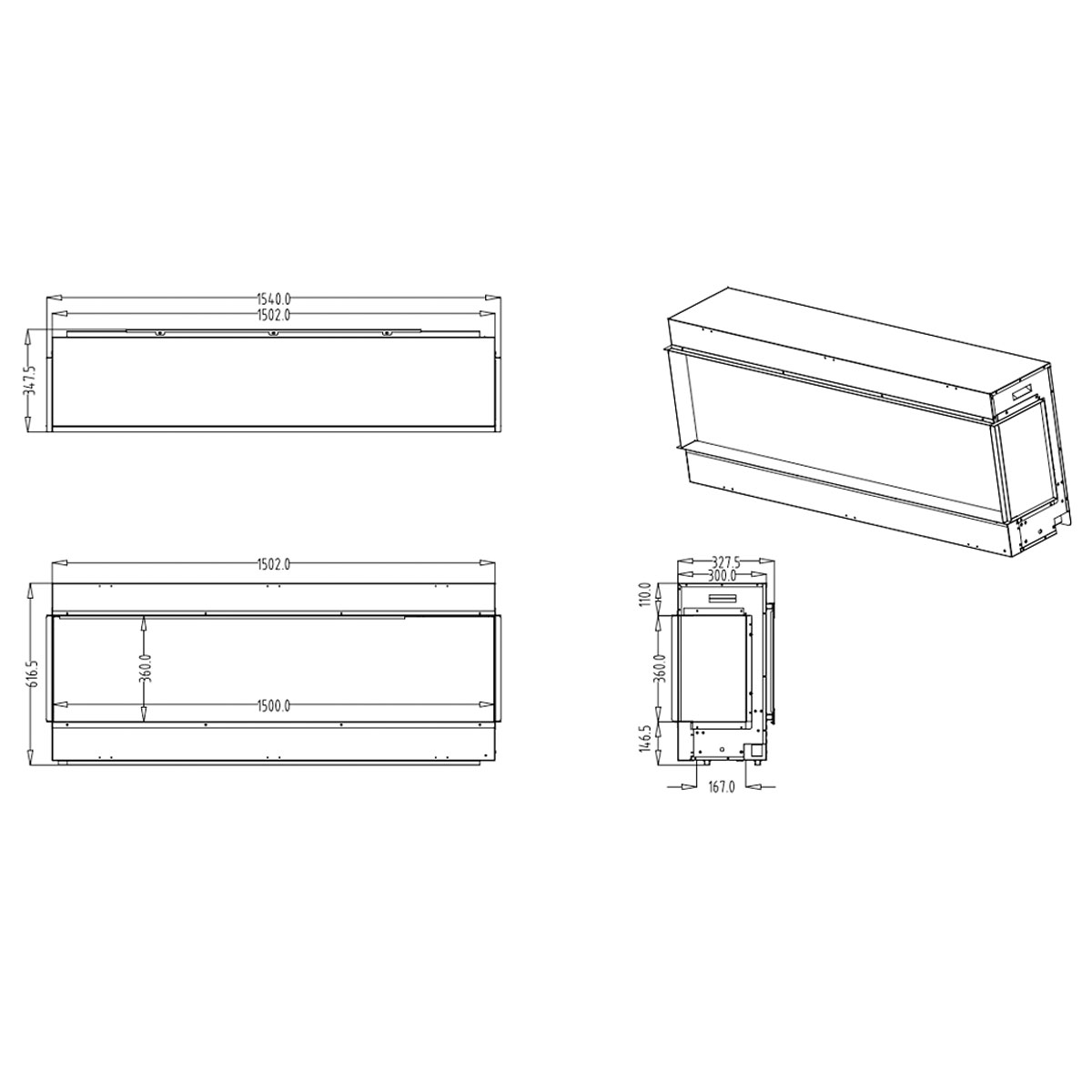 LINEAFIRE Electric Fire Multisided 150