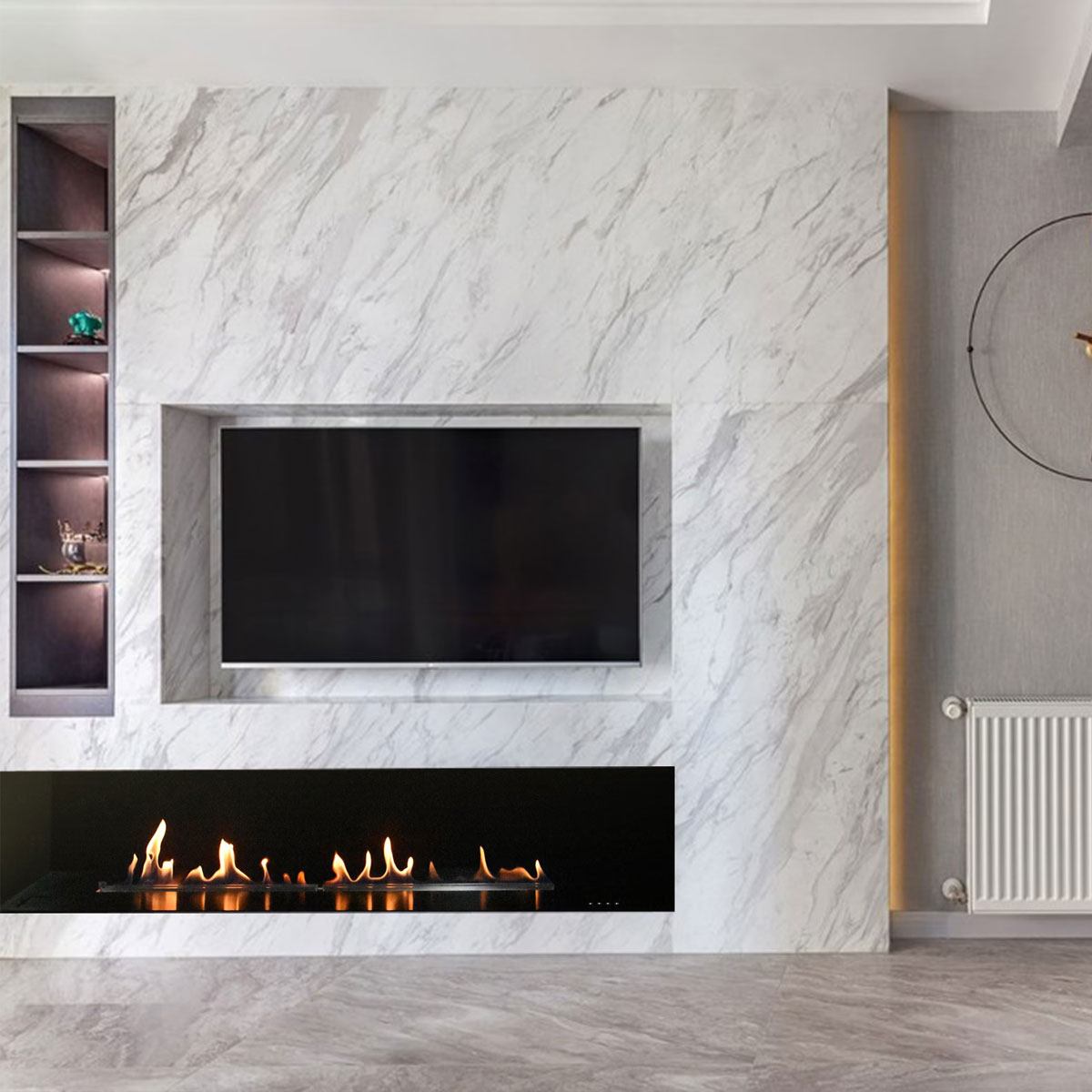 Among the best Art Fireplace Designs, The Ventless Ribbon Ethanol Burner inserts allow the flames to develop freely and in a very natural way! The intermediate solution for a dynamic fire.