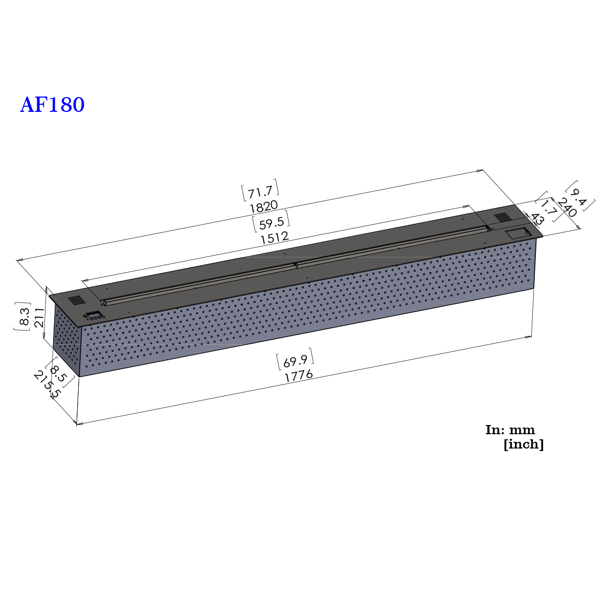 Dimensions: W 182 x H 21.5 x D 24 cm