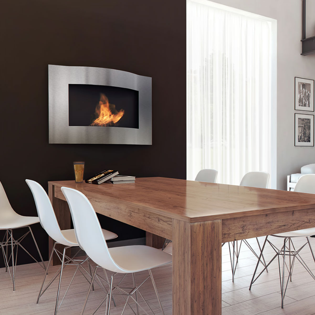 Biofireplace raises the temperature up to several Celsius degrees, depending on the height of the flame and the size of the inside.