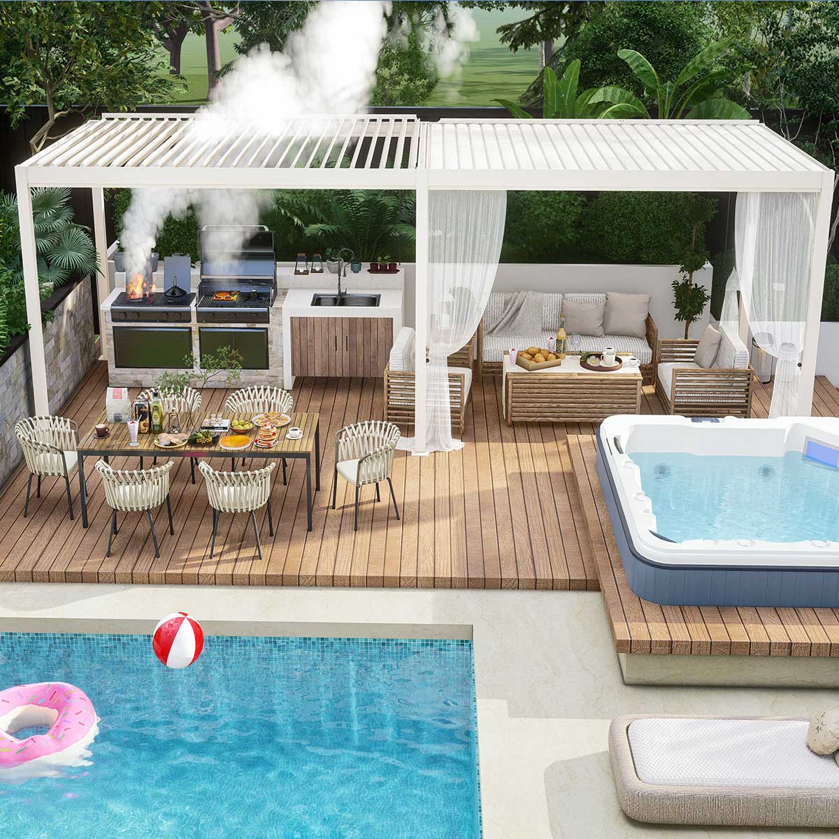 SCD Freestanding Manual Pergola 3.905×4.955×2.8m WHITE