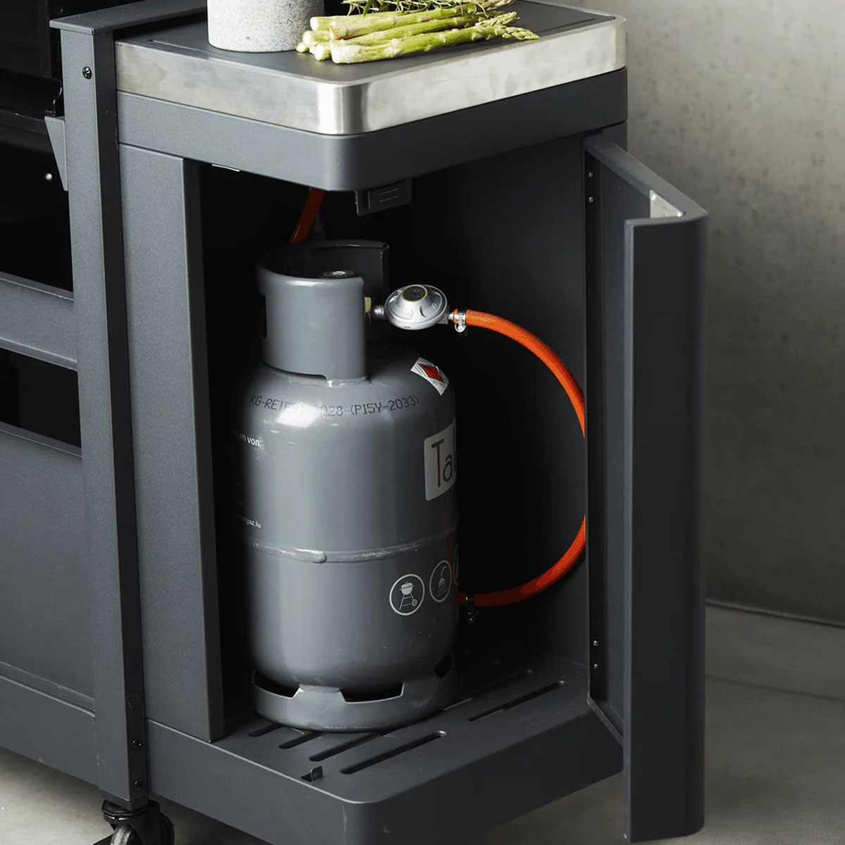 – Separate gas cylinder cupboard.