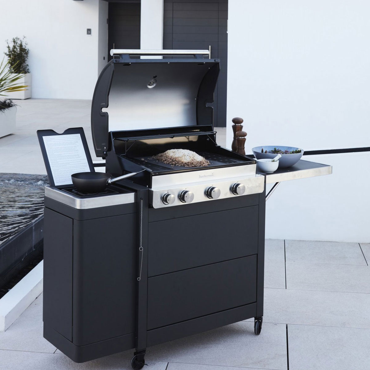 – Side burner included.