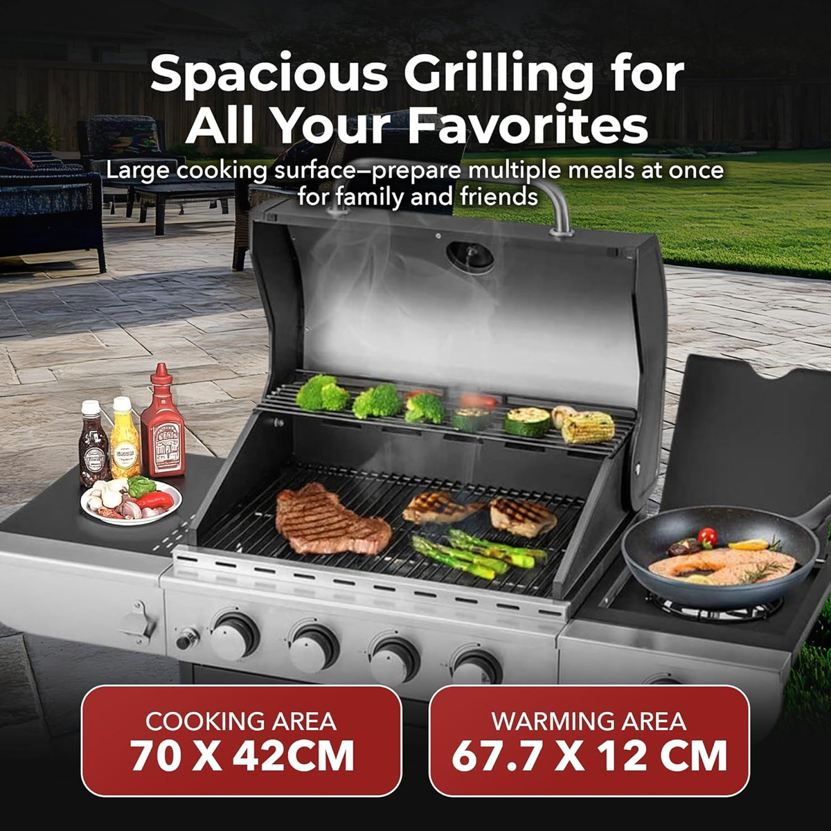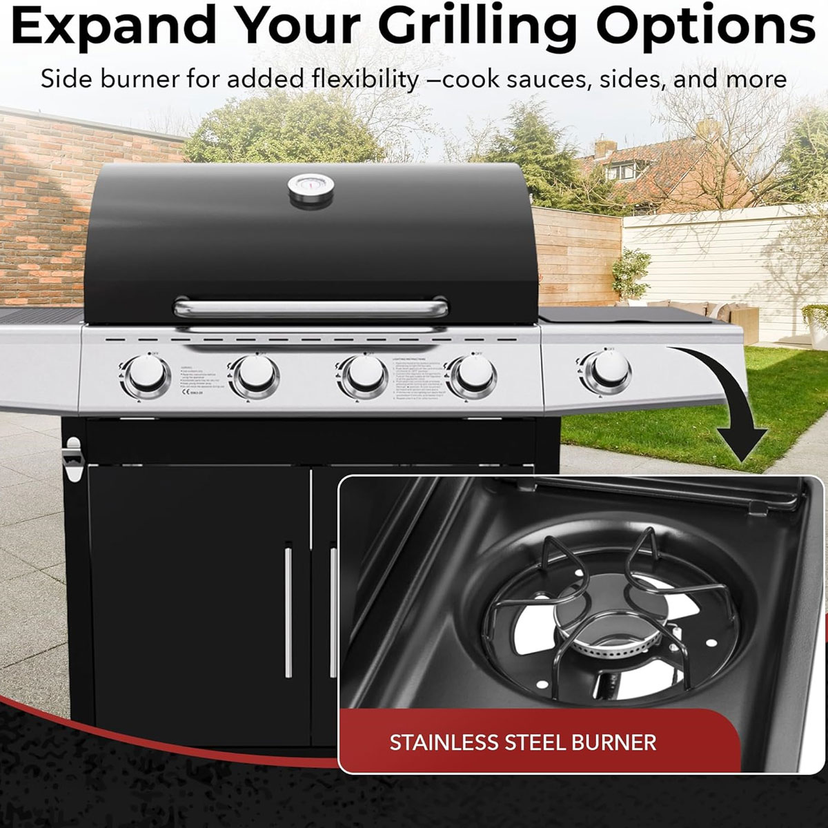 Elevate your outdoor cooking experience  featuring a convenient side burner.