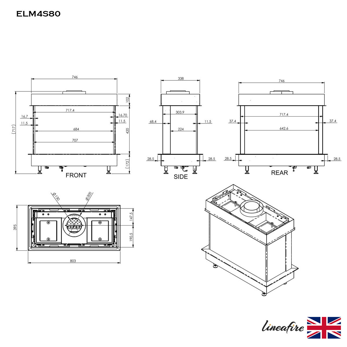 LINEAFIRE UK Gas Fire 4-Sided 80