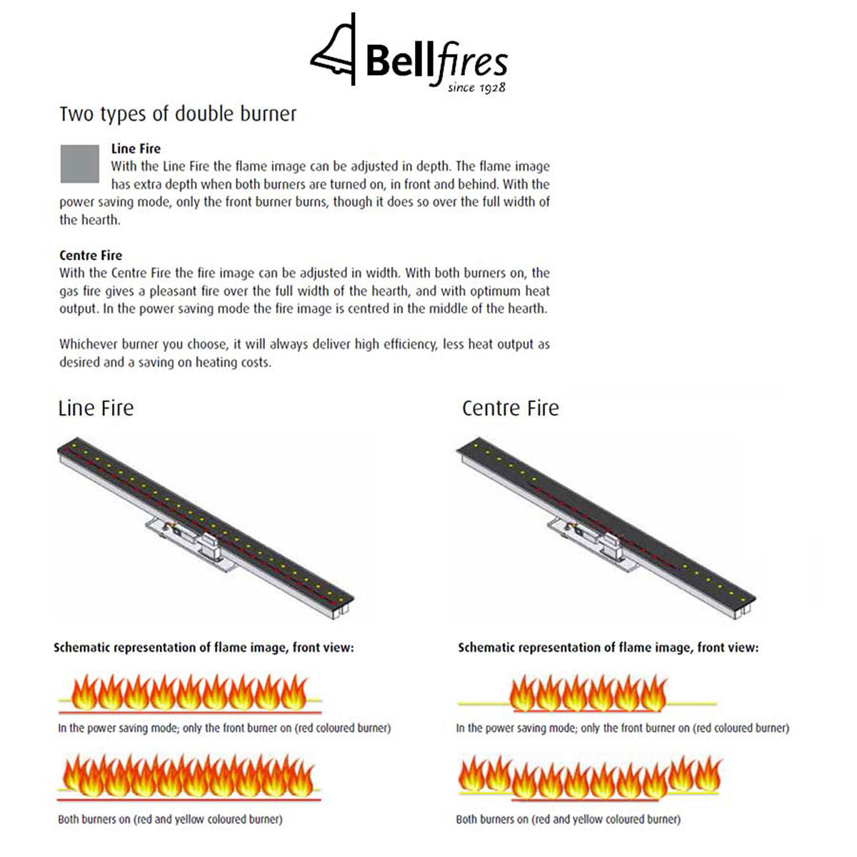 A unique front fireplace with a superior appearance provided with the Premium Fire 2 burner.