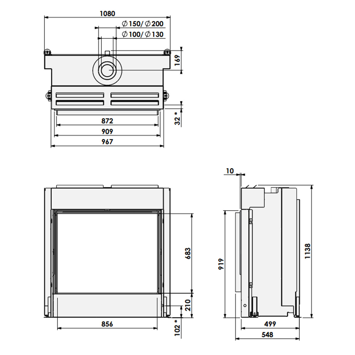 Smoke gas exit / air intake: Ø 10-15 of Ø 13-20 cm