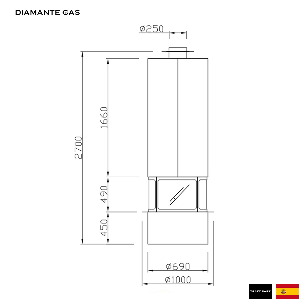 TRAFORART SPAIN Gas Fireplace central Diamante without Glass
