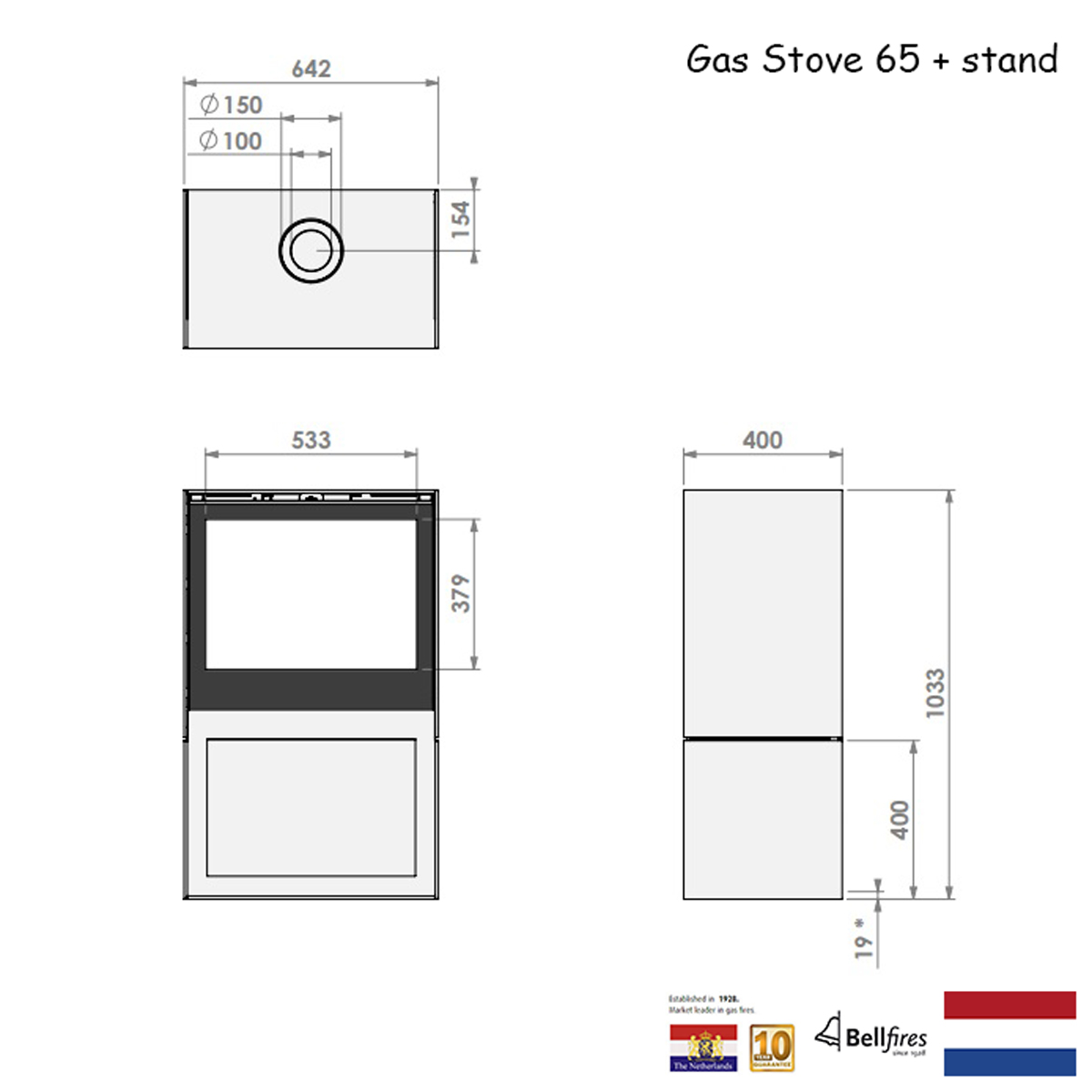 Smoke gas exit / air intake: Ø 10-15 cm