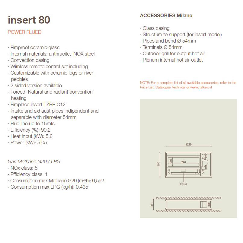 -The Insert does not require the flue traditional but intake and exhaust pipes of reduces section (54 mm) and possible significant length (10 m), to allow an infinite number of environments without masonry and architectural constraints.
