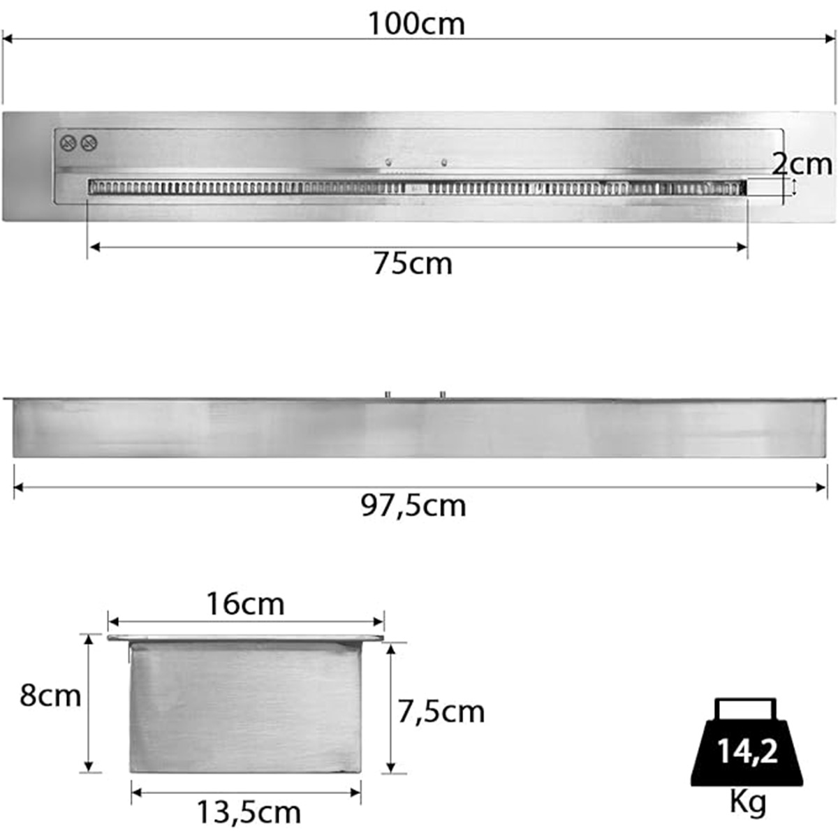 – Full stainless steel double layer durable bioethanol burner flame control tool bar.