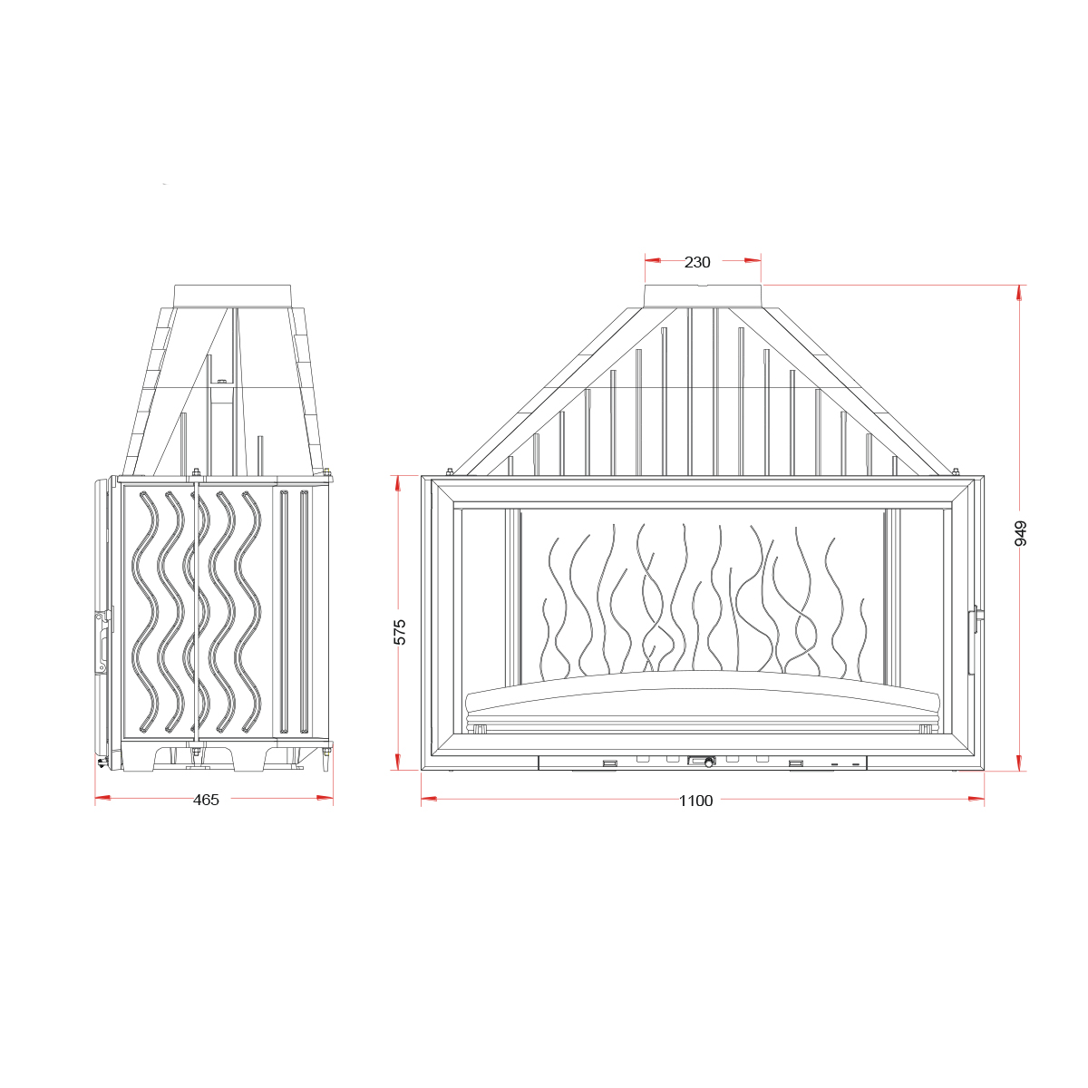 The unit can alternate between intermittent and extended burning mode. Intermittent mode requires frequent addition of new wood. It is particularly high-performing and respectful of the environment. Extended burning mode, with a low flame, enables 3 hours of operation without intervention.