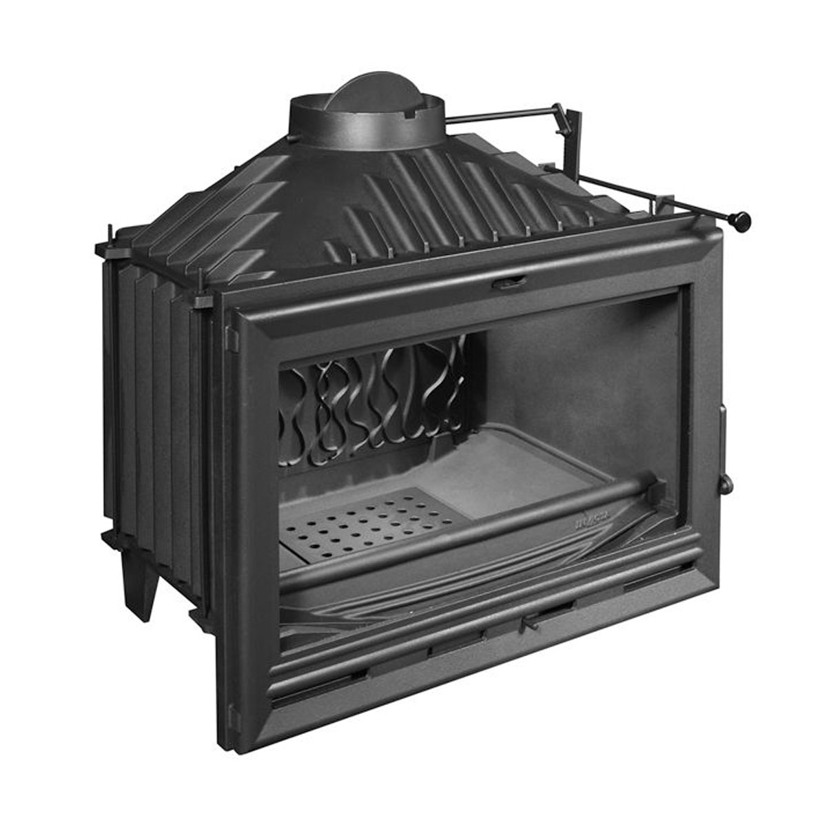 The cast-iron stoves, hearths, and inserts manufactured by Invicta are labeled French Origin Guaranteed.