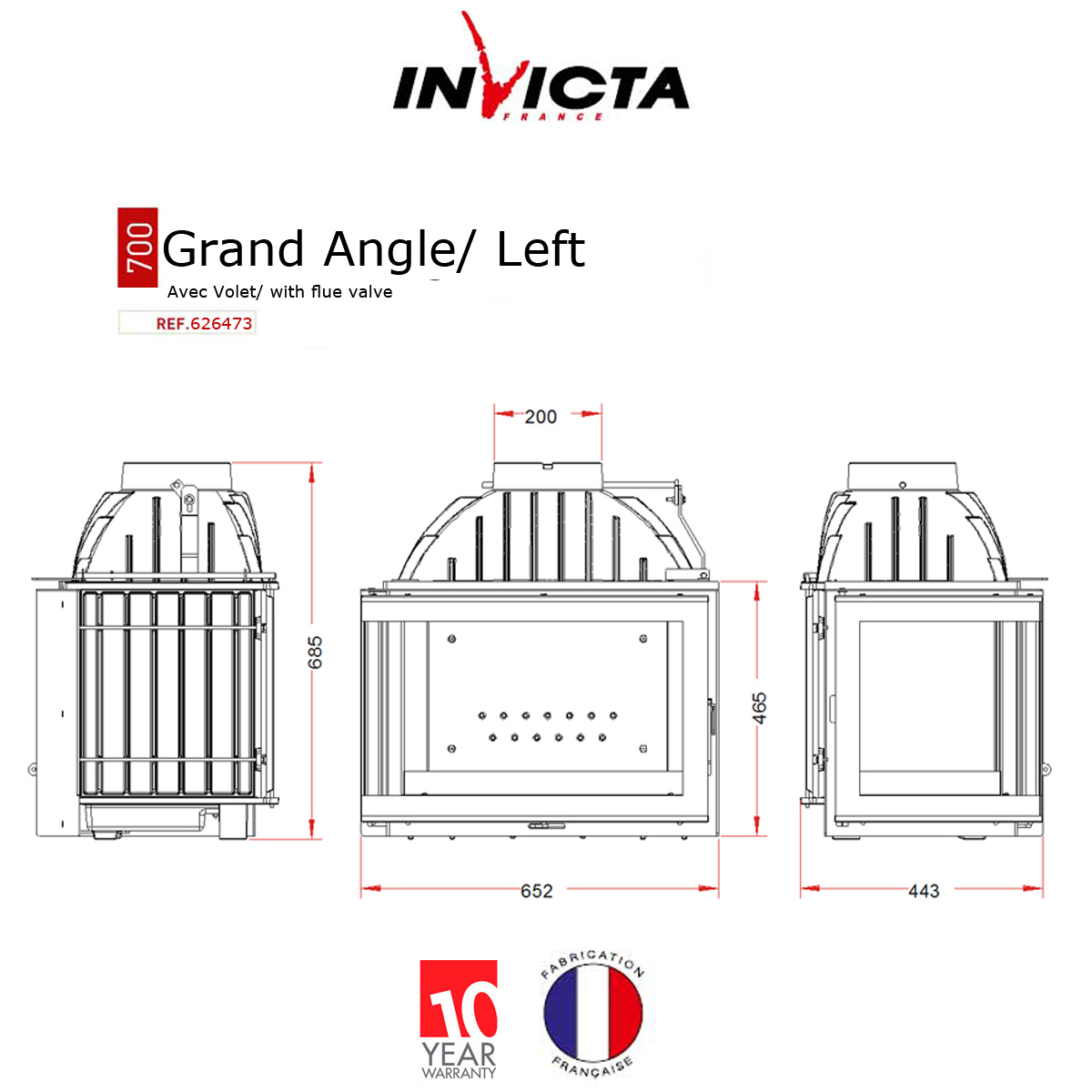 The cast-iron stoves, hearths, and inserts manufactured by Invicta are labeled French Origin Guaranteed.