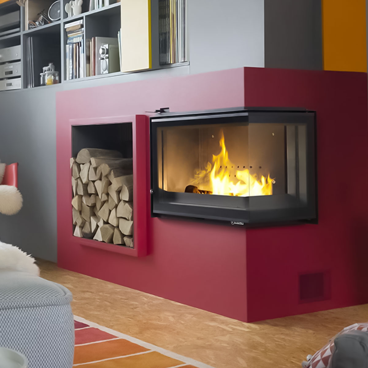 The unit can alternate between intermittent and extended burning mode. Intermittent mode requires frequent addition of new wood. It is particularly high-performing and respectful of the environment. Extended burning mode, with a low flame, enables 3 hours of operation without intervention.