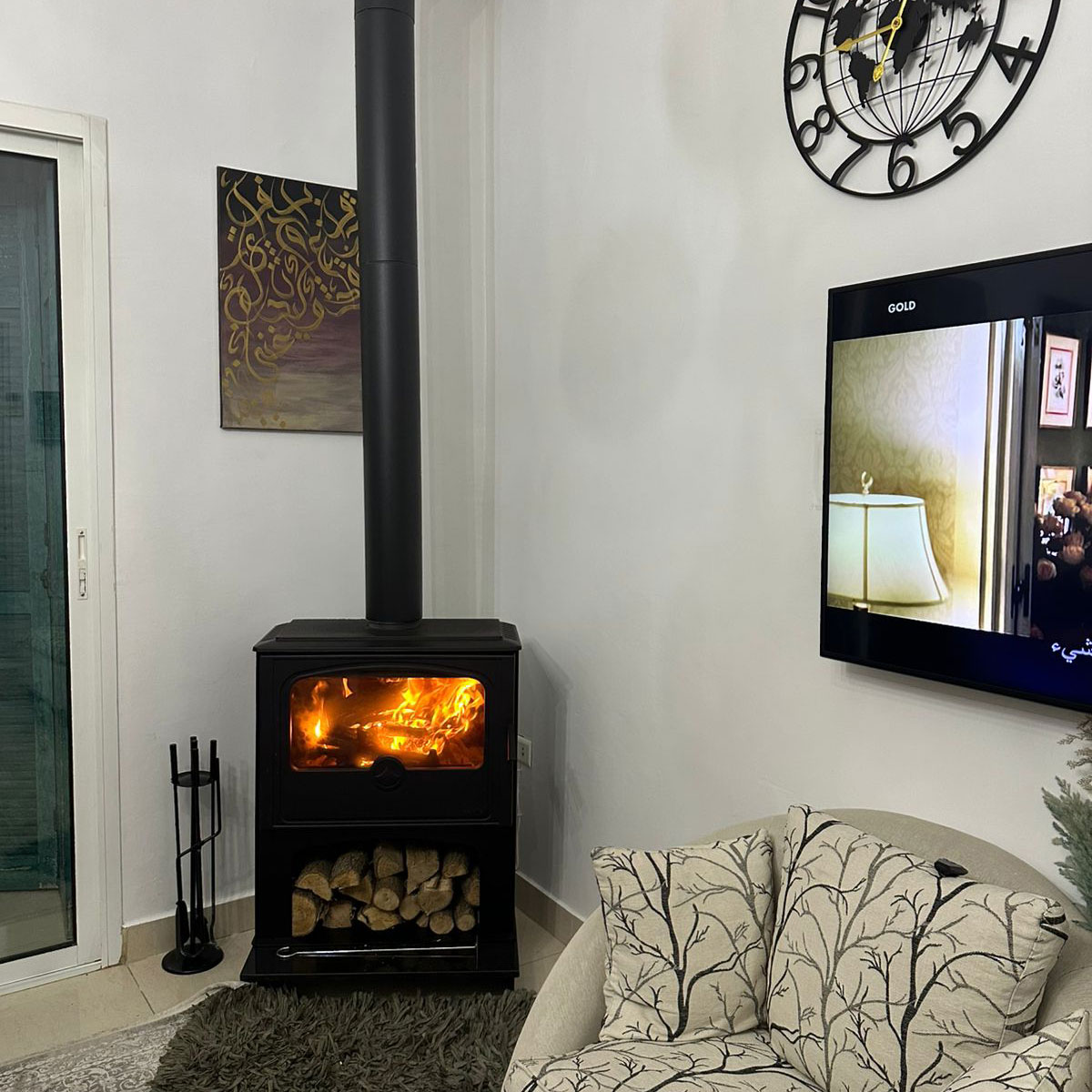 Embrace warmth and elegance with this sleek and stylish addition to any home.