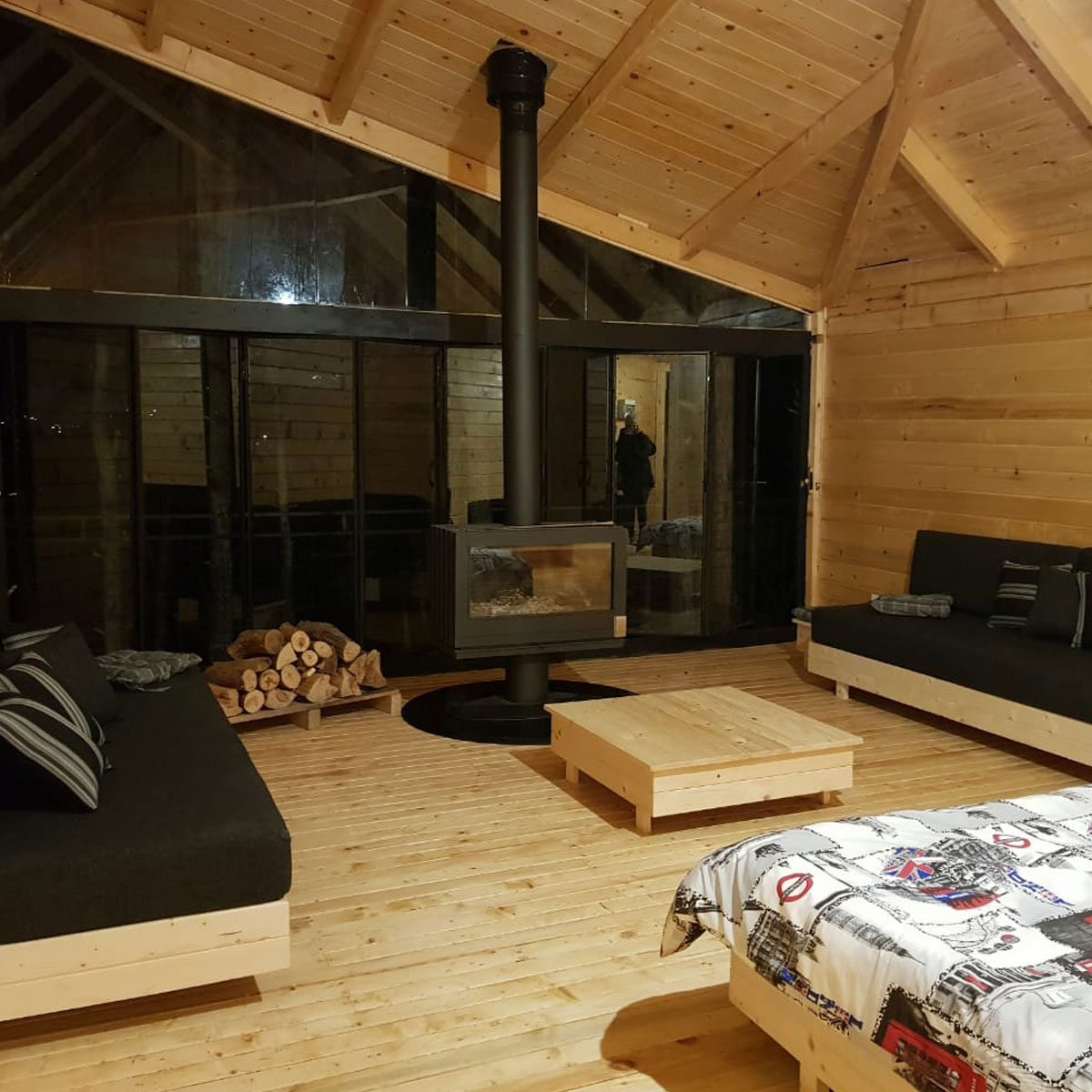 It gives pride of place to the spectacle of the flames and welcomes large logs.
