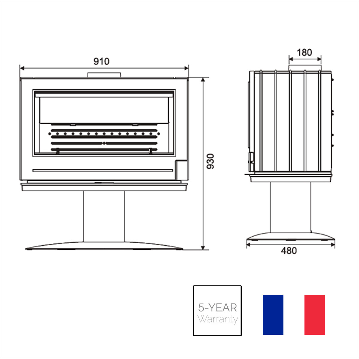 Simple and modern, Elton is an efficient stove. It gives pride of place to the spectacle of flames and accommodates large logs. New version.