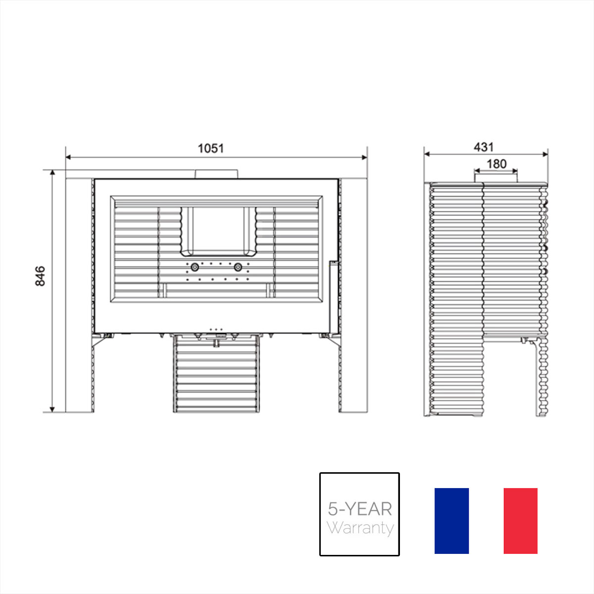 The cast-iron stoves, hearths, and inserts manufactured by Invicta are labeled French Origin Guaranteed.
