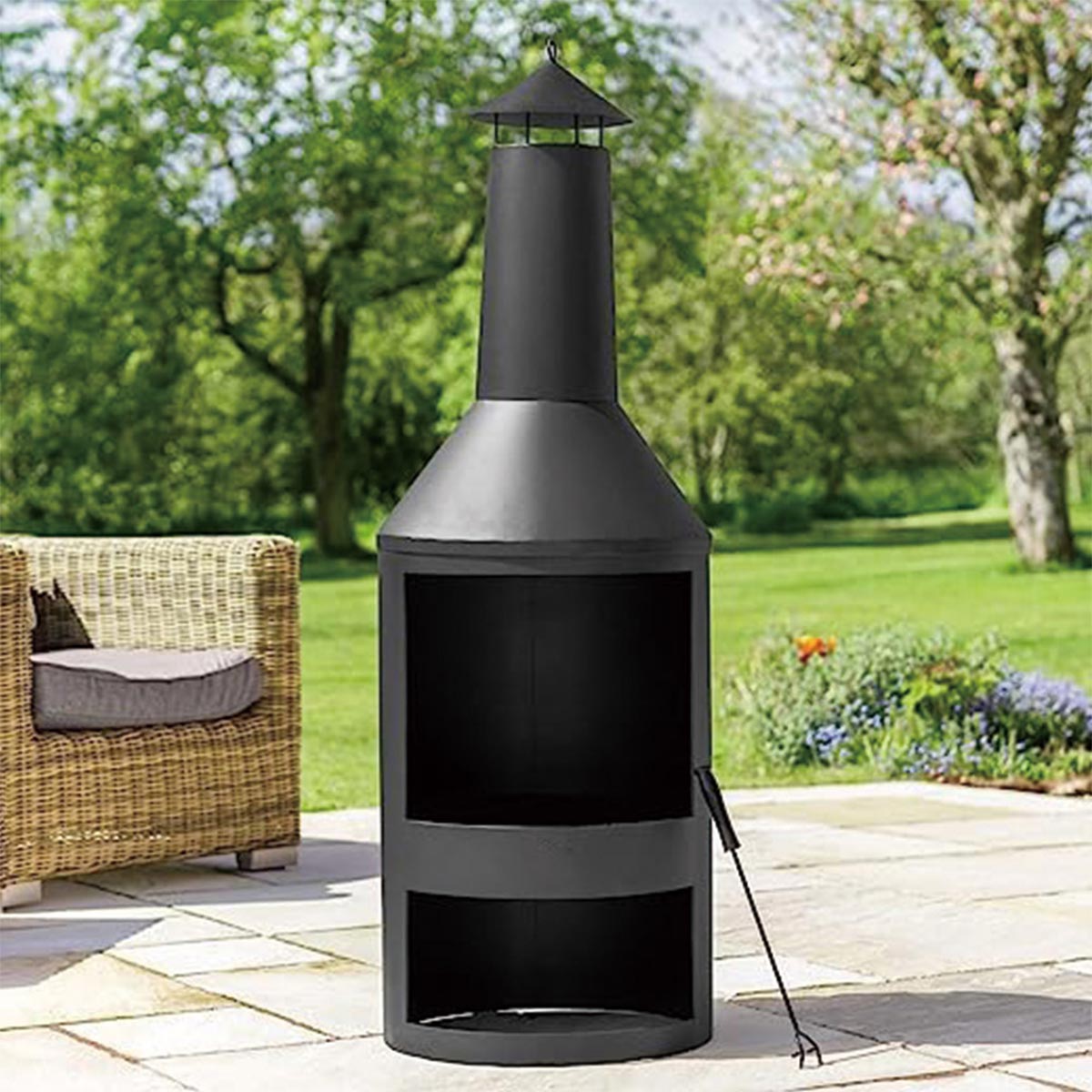 KJ Wood Fire Outdoor Chimenea with Log Grate Black