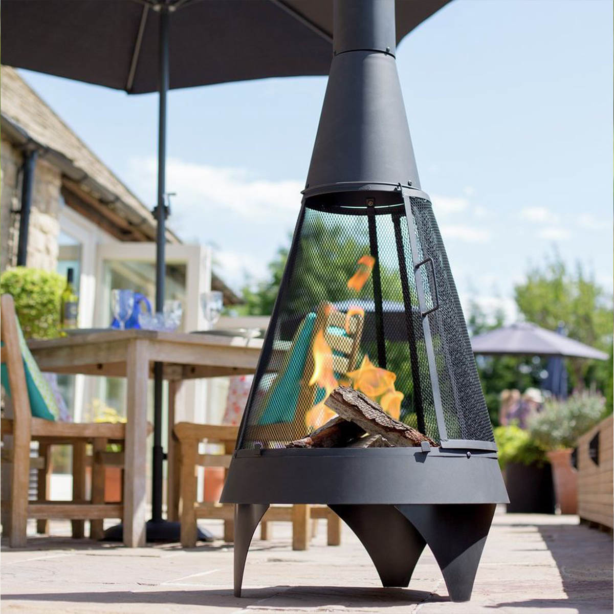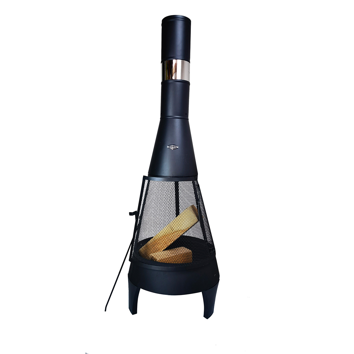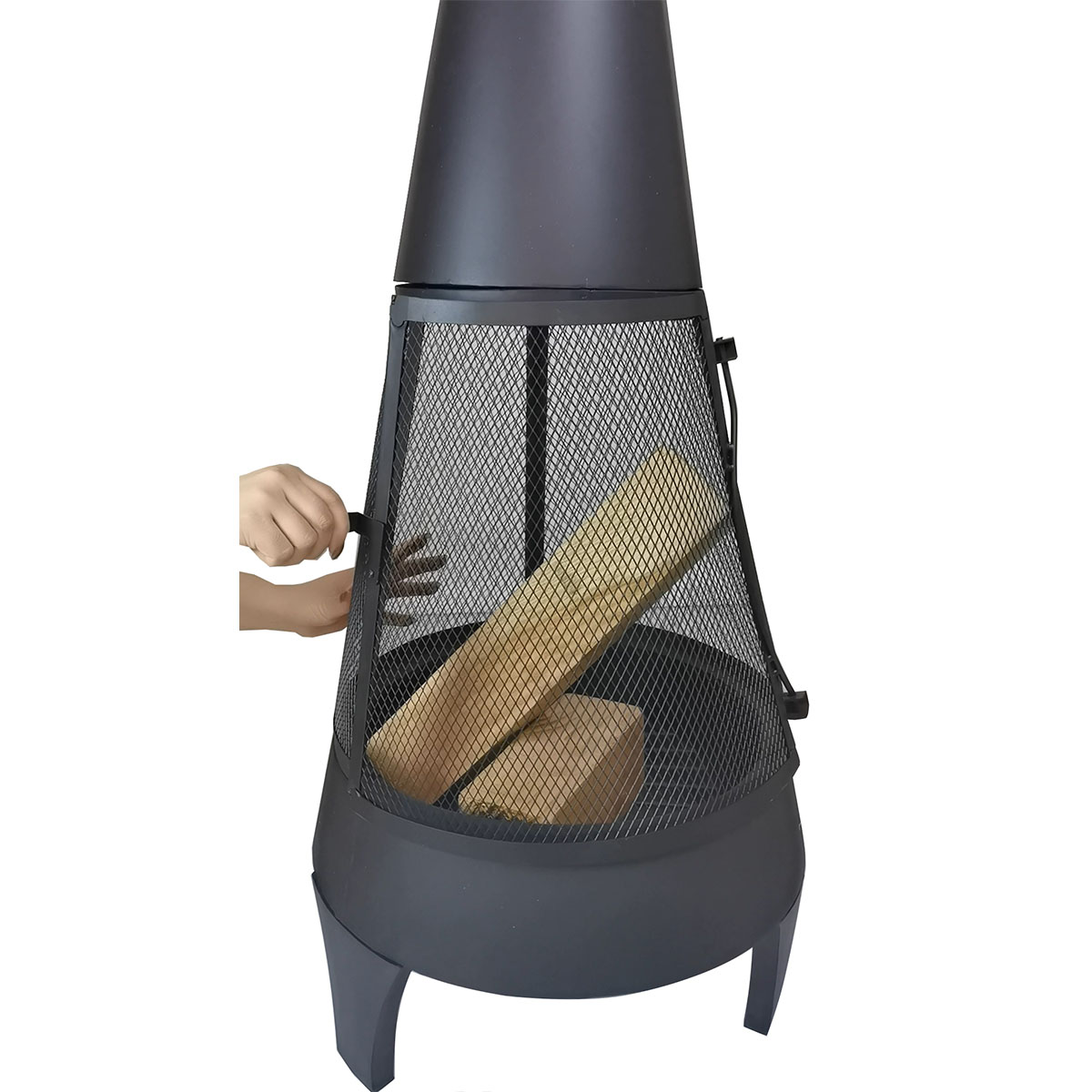 KJ Wood Fire Outdoor Chimenea with Stick Grid Black