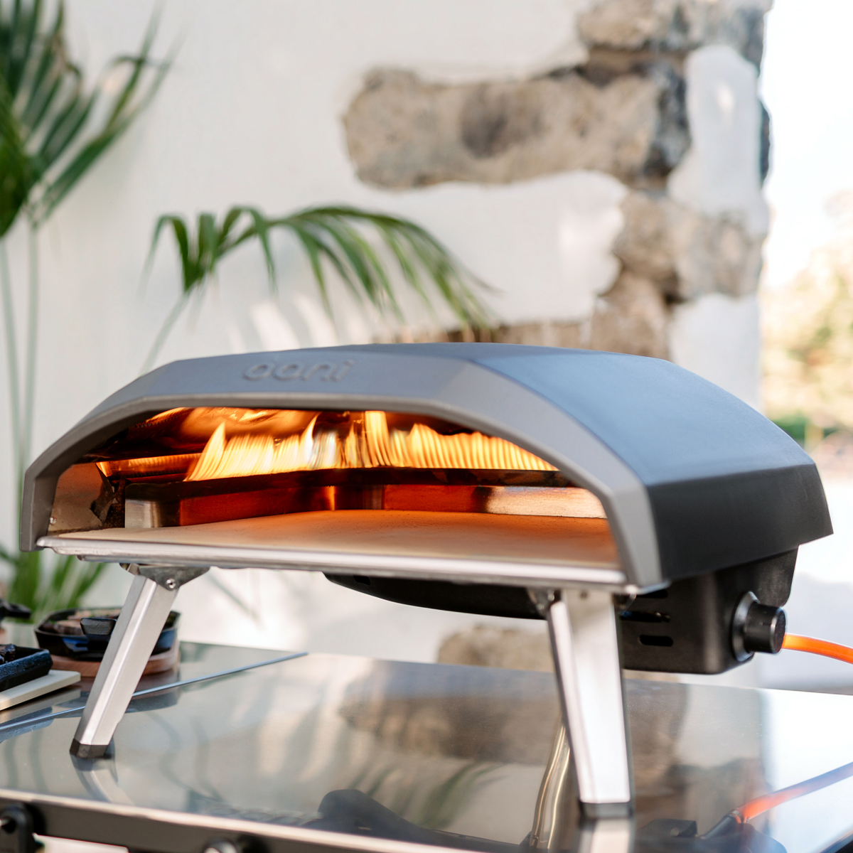 Take charge of your outdoor cooking experience with Koda 16, our gas-powered outdoor pizza oven designed for stone baking epic 16-inch pizzas and delicious flame-cooked steaks, fish and vegetables. Decide between fueling with a propane tank or a natural gas line for a maintenance-free cooking experience. Blending a showstopping design with the convenience of cooking with gas, Koda 16 boasts a wide opening, large cordierite stone baking board and innovative L-shaped burner. Like all Ooni pizza ovens, Koda 16 reaches up to 950 °F (500 °C) – the blazing heat needed for cooking stone-baked, perfect pizza.